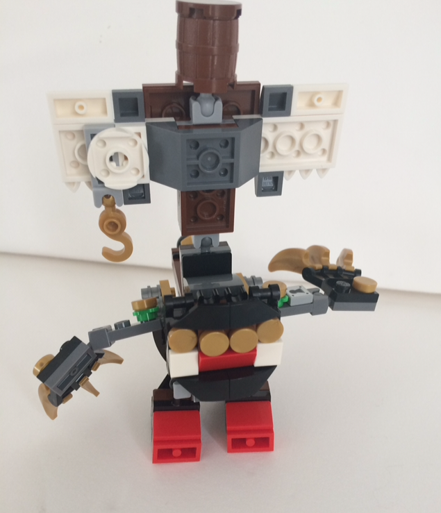 On ne pouvait y échapper pour ce thème, une figurine ressemblant à un bateau . Ce monstre rassemble à lui seul tout ce qu'on peut trouver sur un bateau pirate, des canons à l'avant, sur les cotés, l'arrière de la cabine dans le dos et les voiles et le mat. On a deux jambes différentes. Ce bateau est fort décalé mais super original, extravagant et c'est pour moi la plus réussie des mixels MAx depuis la première série. note 15/10 quand on aime on ne compte pas ::d