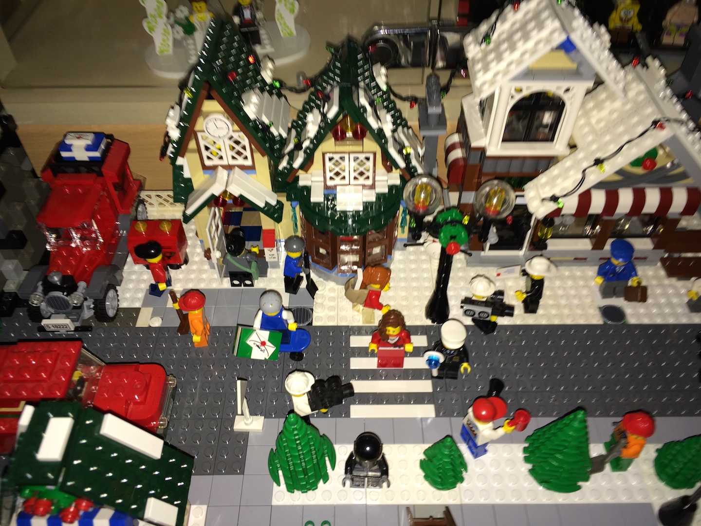 les sets présent sont:-le magasin de jouet-la boulangerie de noel-la poste du village-le cottage d'hiver-le winter village market-l'attelier du père noel