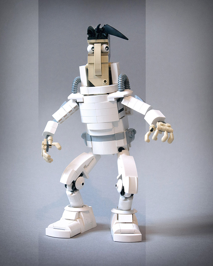 j'ai du faire quelques compromis tout de même au niveau de l'habillage (bras et jambes). les articulations ne devant pas être genée par une brique.