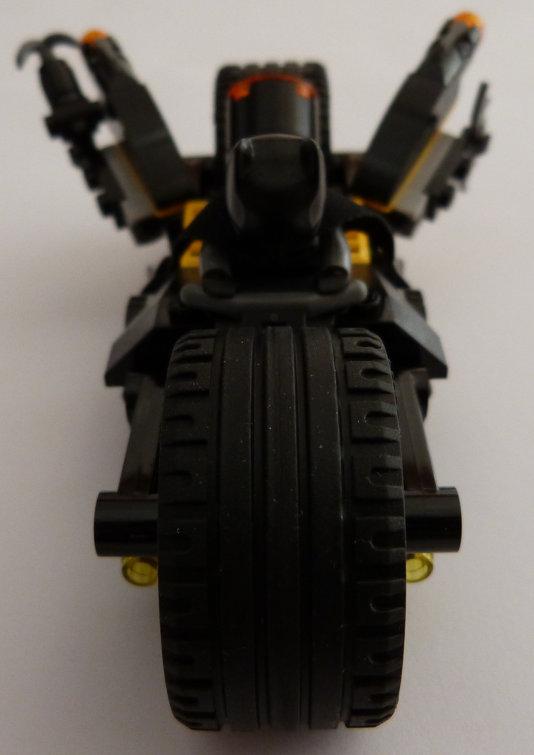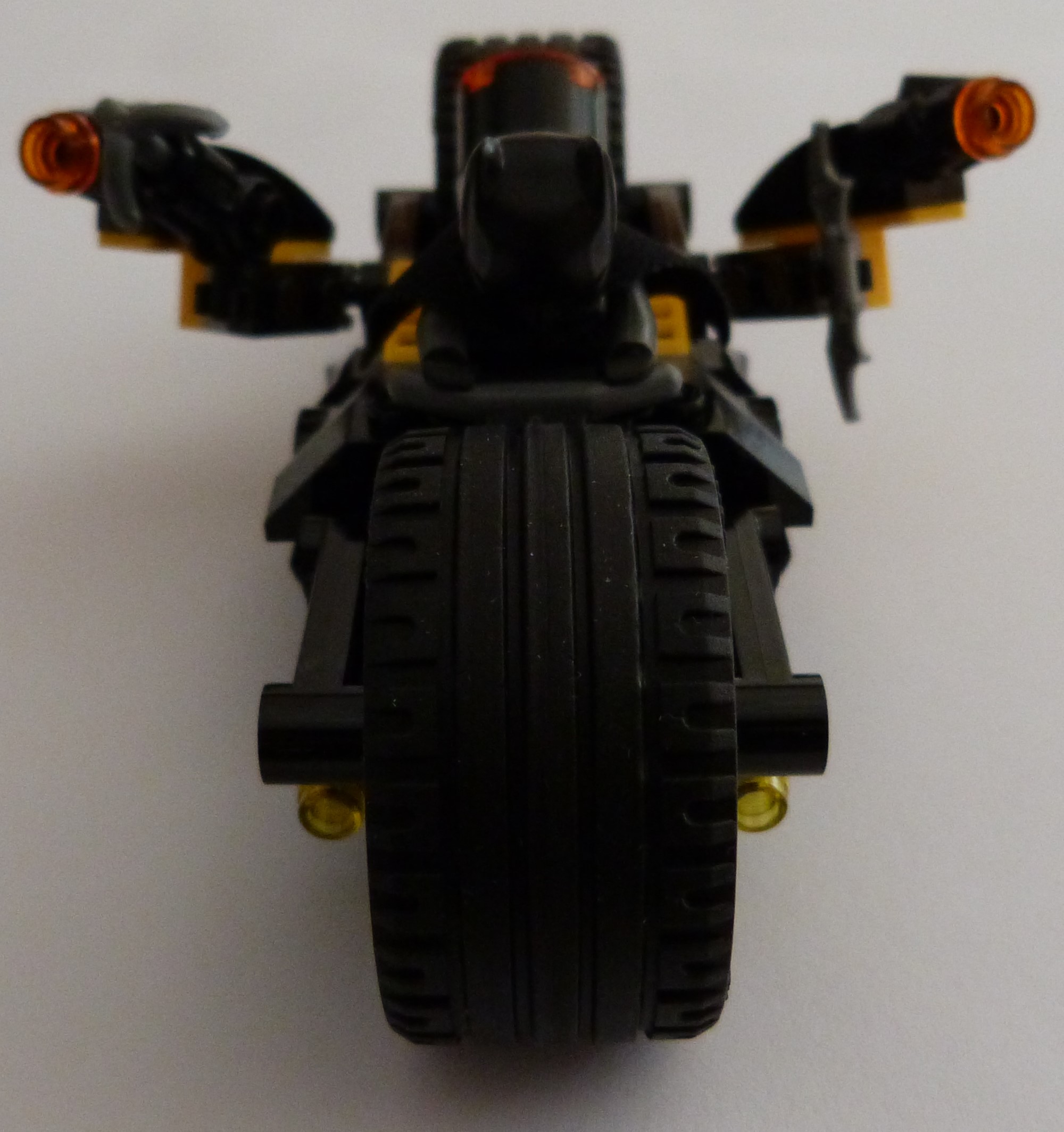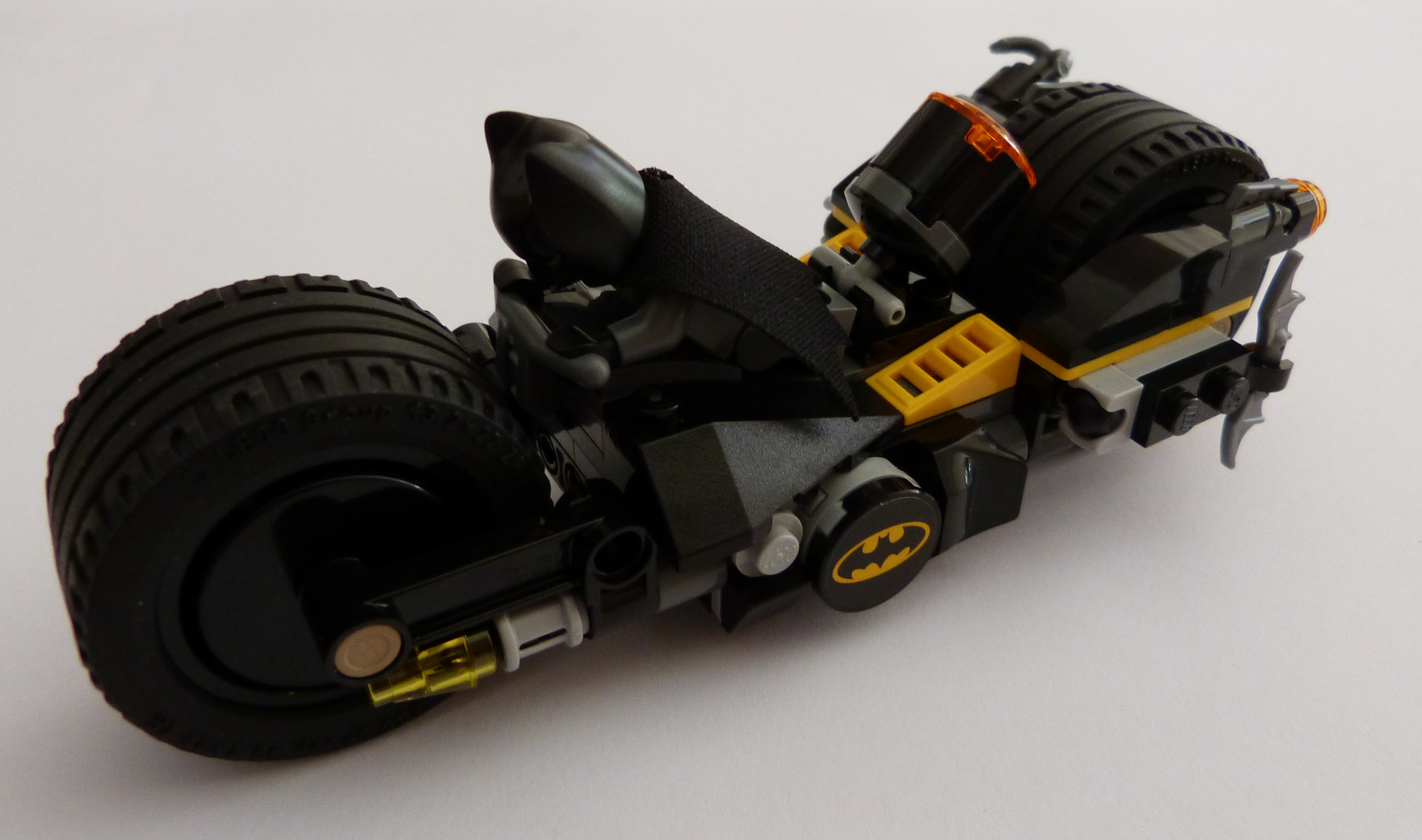 La moto de Batman finie, avec des canons à l'arrière qui sont pas mal