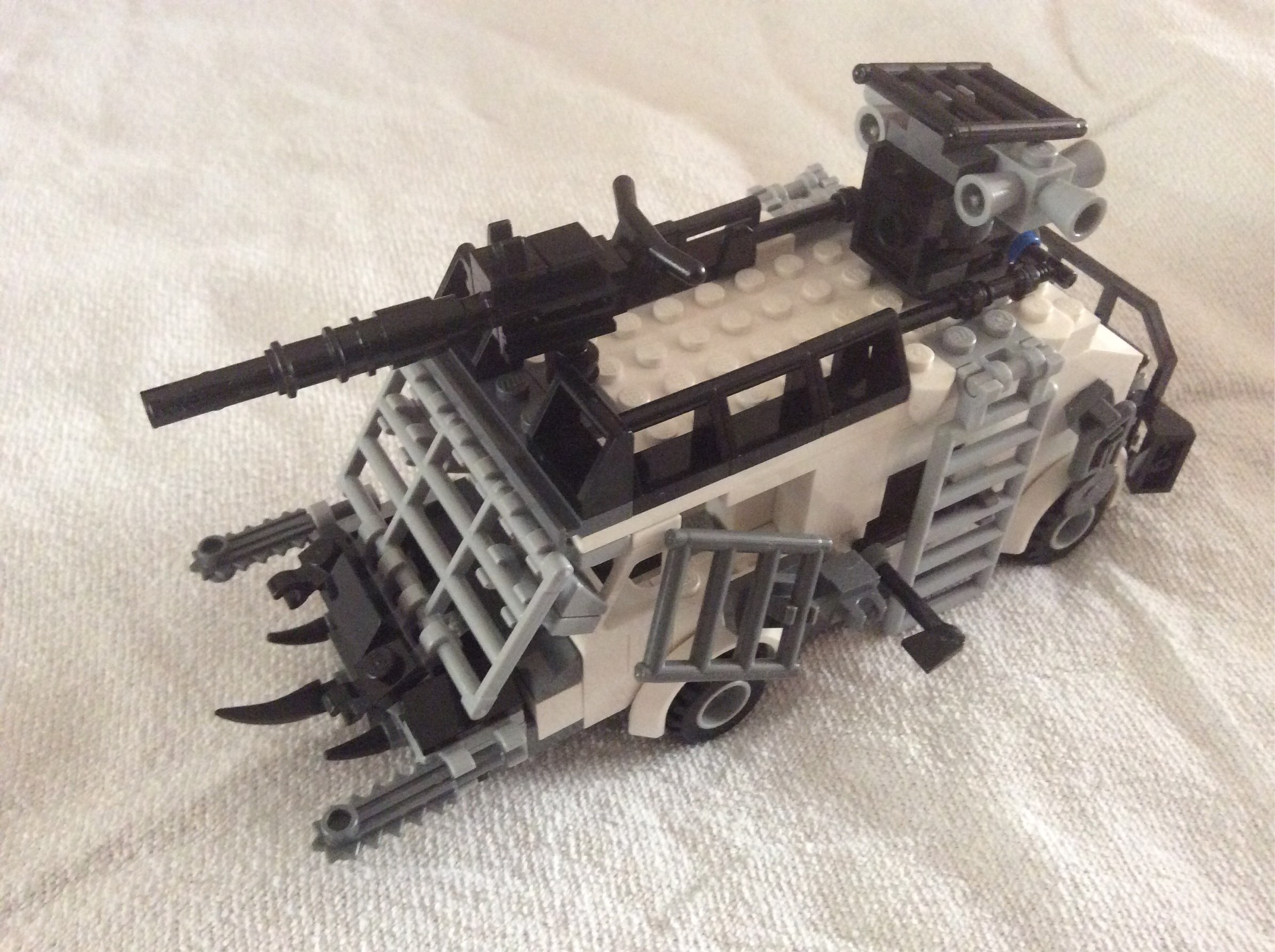 J'ai fais une voiture inspirée de la série "the walking dead". On peut la voir dans la prison près de la forêt, les pare-chocs sont terribles et l'action se déroule pendant une apocalypse.