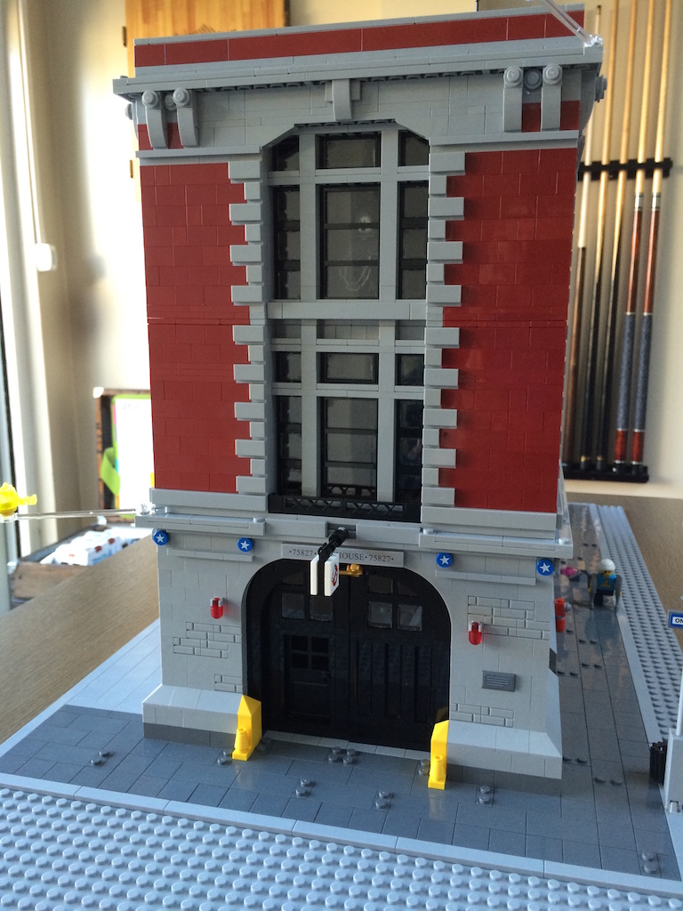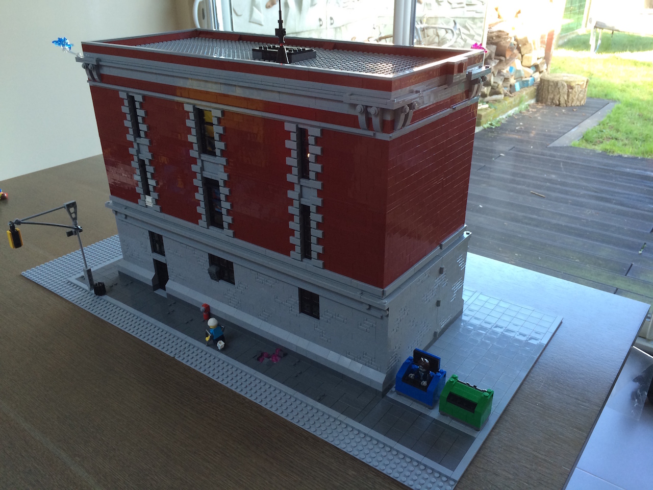 Comme je le dit dans le titre, voici la caserne Ghostbuster agrandit et modifié, pour que la voiture puisse se garer et que l'on puisse ouvrir les portes sans problèmes.