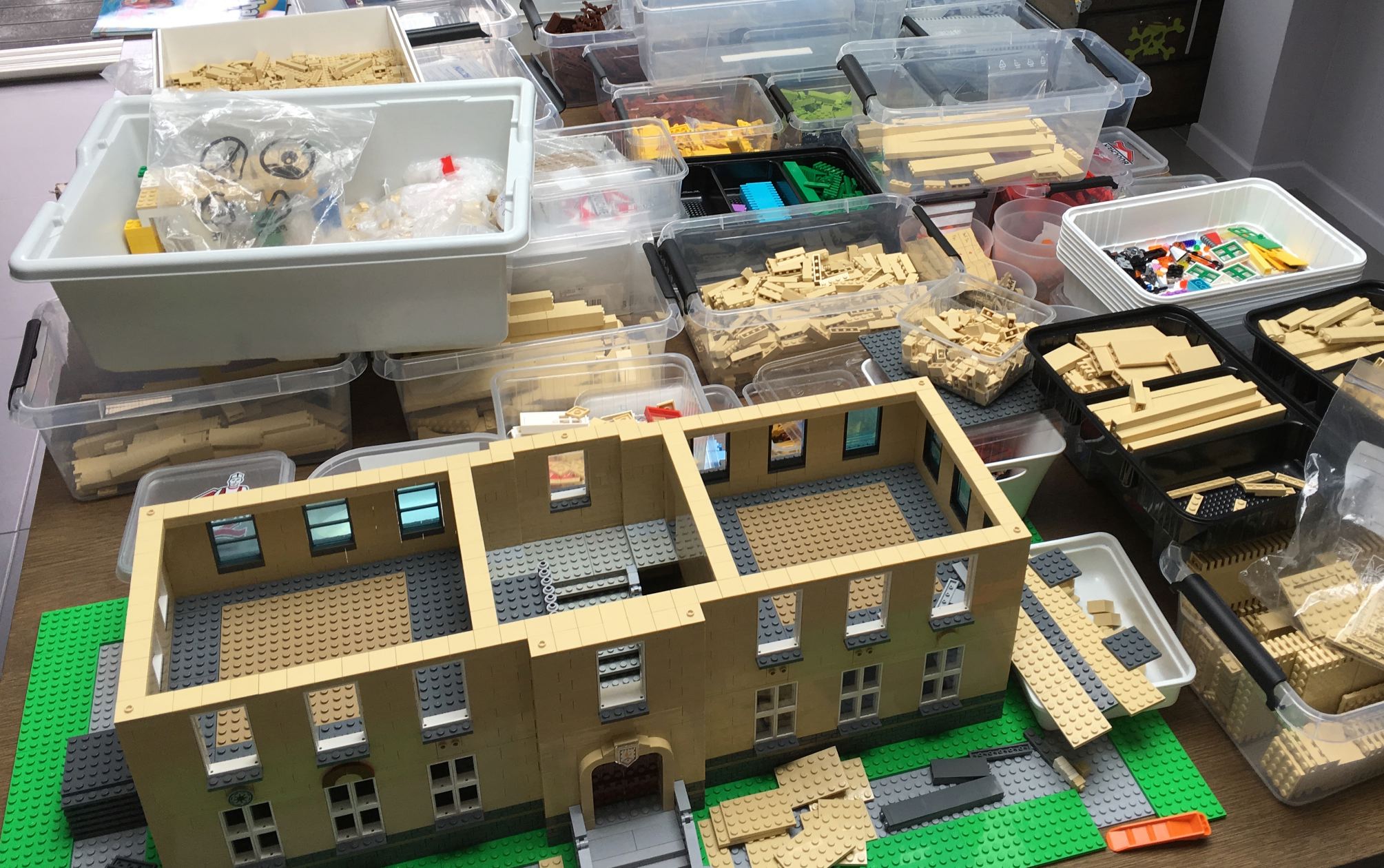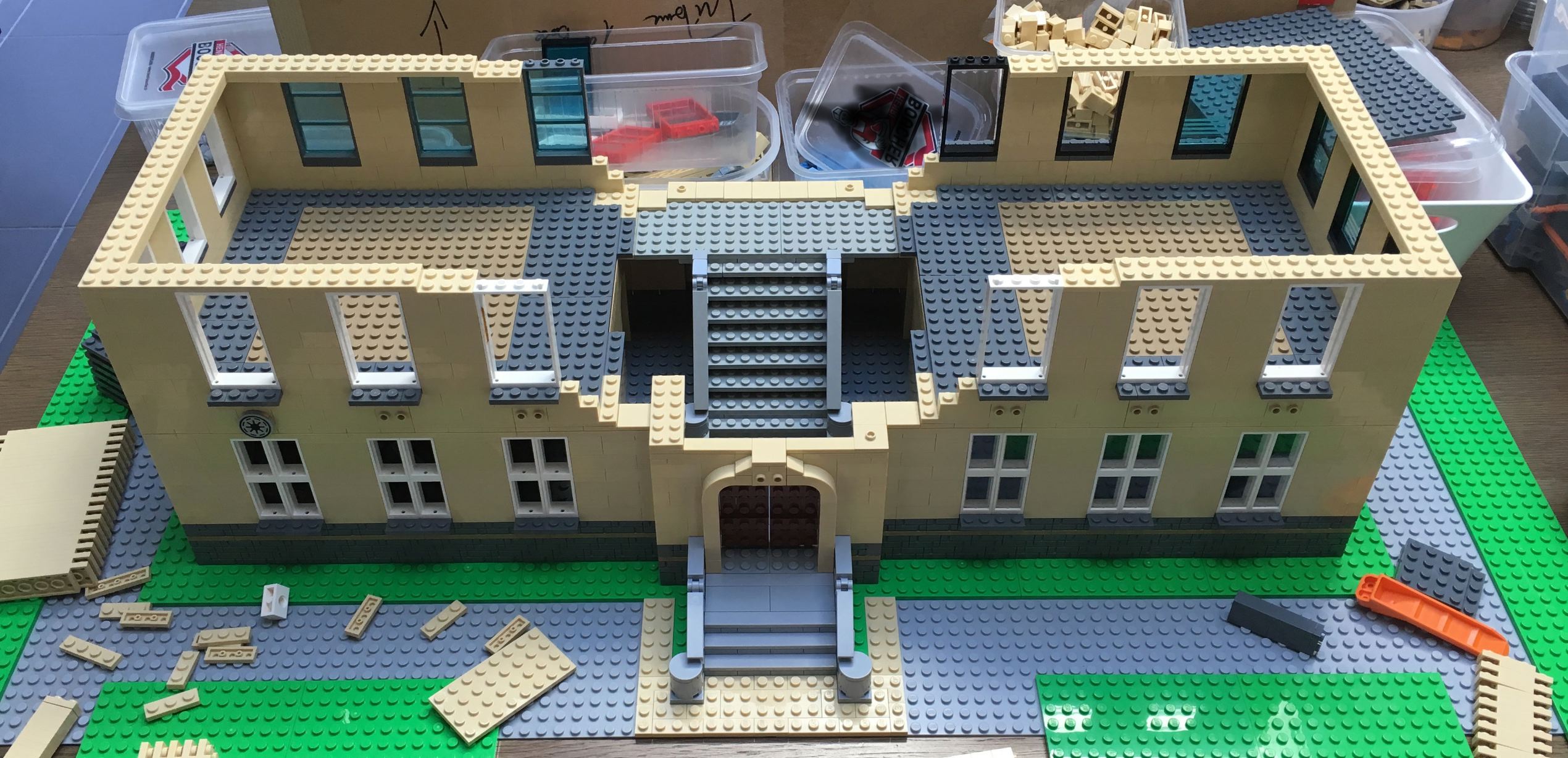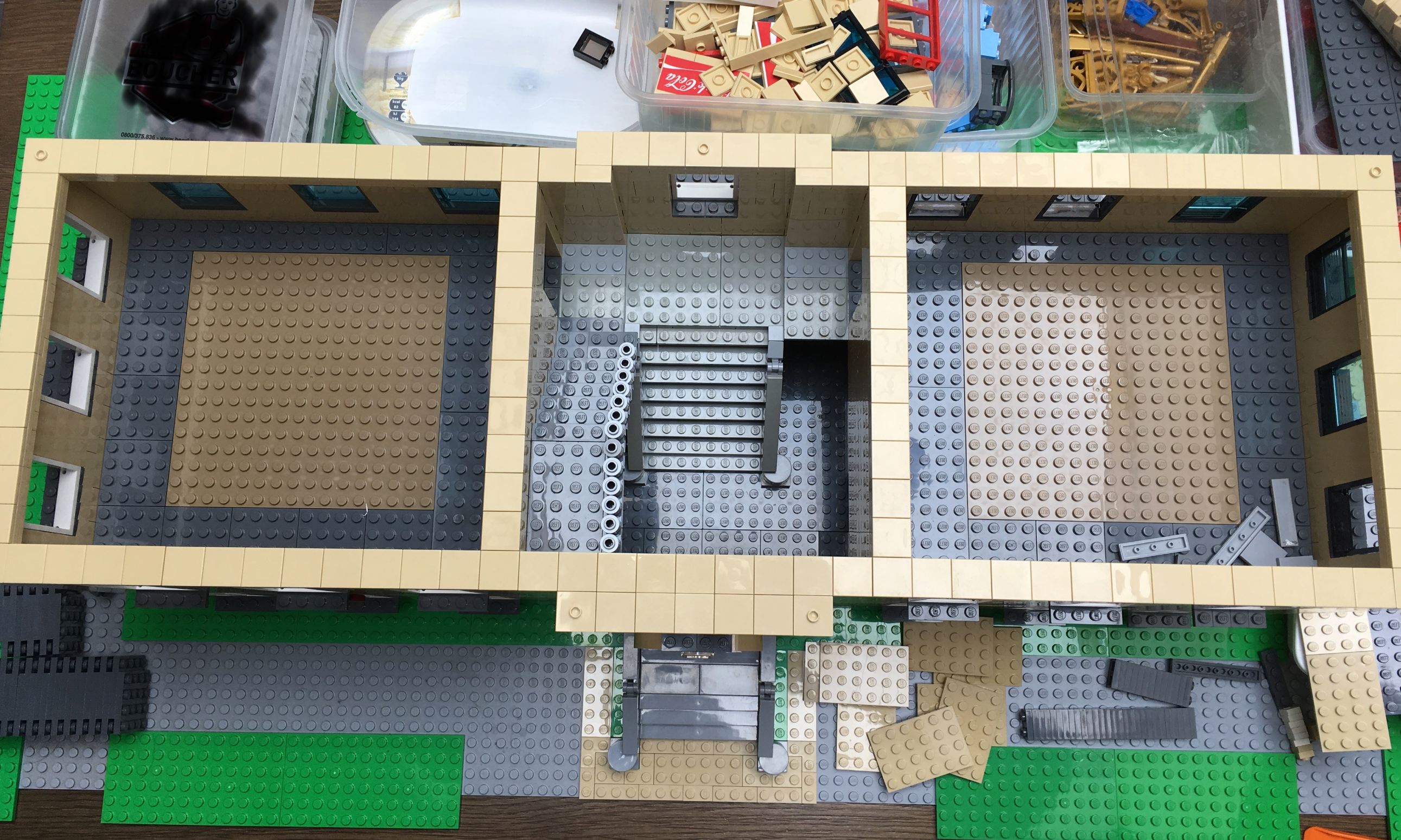 Ayant démonté mon Stade de Basket-ball (il me faut de la piéces) voici les début du château de Moulinsart, le rez de chaussé est quasi fini (reste a changer les fenêtres quand je les aurai trouvées).