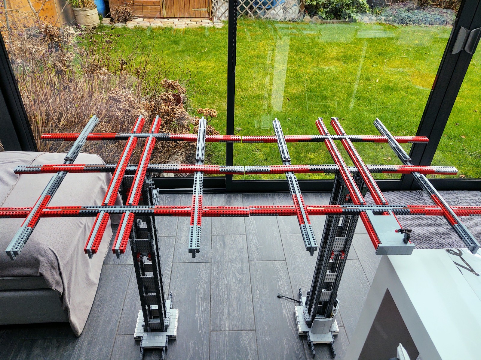 Bonjour, j'ai peur d'être juste pour Cysoing mais voici l'idée : réaliser la plateforme d'atterrissage de Endor avec la même échelle que le AT-AT et la navette lambda UCS. La photo montre la structure de départ de 2640 pièces par pilier (14000 pièces estimées hors socle). Le chargement de l'AT-AT se fera à 55 Cm par rapport au niveau du sol lui lui-même sur un socle de 4 tenons de haut pour une surface de 4x2 plaques de 48 de côté. Le plateau d'atterrissage fait 160 tenons de long sur 80 de large avec 4 tenons d'épaisseur. Elle sera 2 fois plus haute avec 4 fois la surface de la plateforme d'il y a 2 ans et donc un peu plus haute qu'une table. L'arrondi des piliers est réalisé avec un plaquage hexagonal.Je suis encore très loin des dimensions des réalisations de Max... ::d