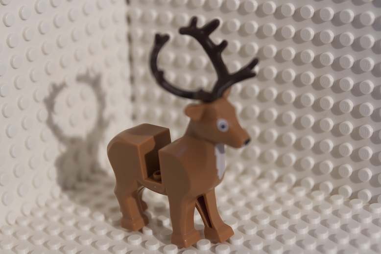 Par contre le renne est très réaliste et construit comme les cheveux avec une ouverture centrale munie de tenons permettant de placer un elfe, des briques supports ou une brique beige pour laisser le renne libre de vagabonder.