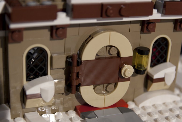 A cette étape est aussi construite la porte d'entrée, ce n'est pas une porte monobloc comme sur de précédents sets, mais une porte construite avec des plaques et des tiles.