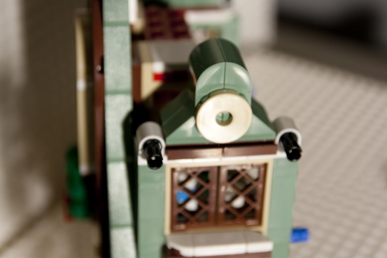 L’étape 5 concerne la cheminée et le four à gaufres. Le four et sa cheminée sont de couleur Light Bluish Gray avec quelques inclusions de Dark Bluish Gray, sont aussi utilisées des briques « mur » qui donnent à l’ensemble un beau rendu.