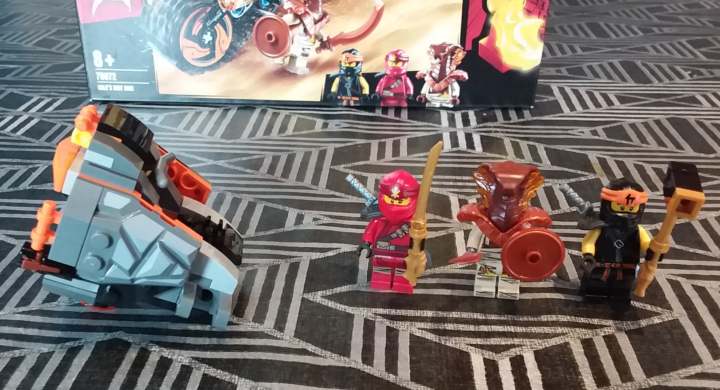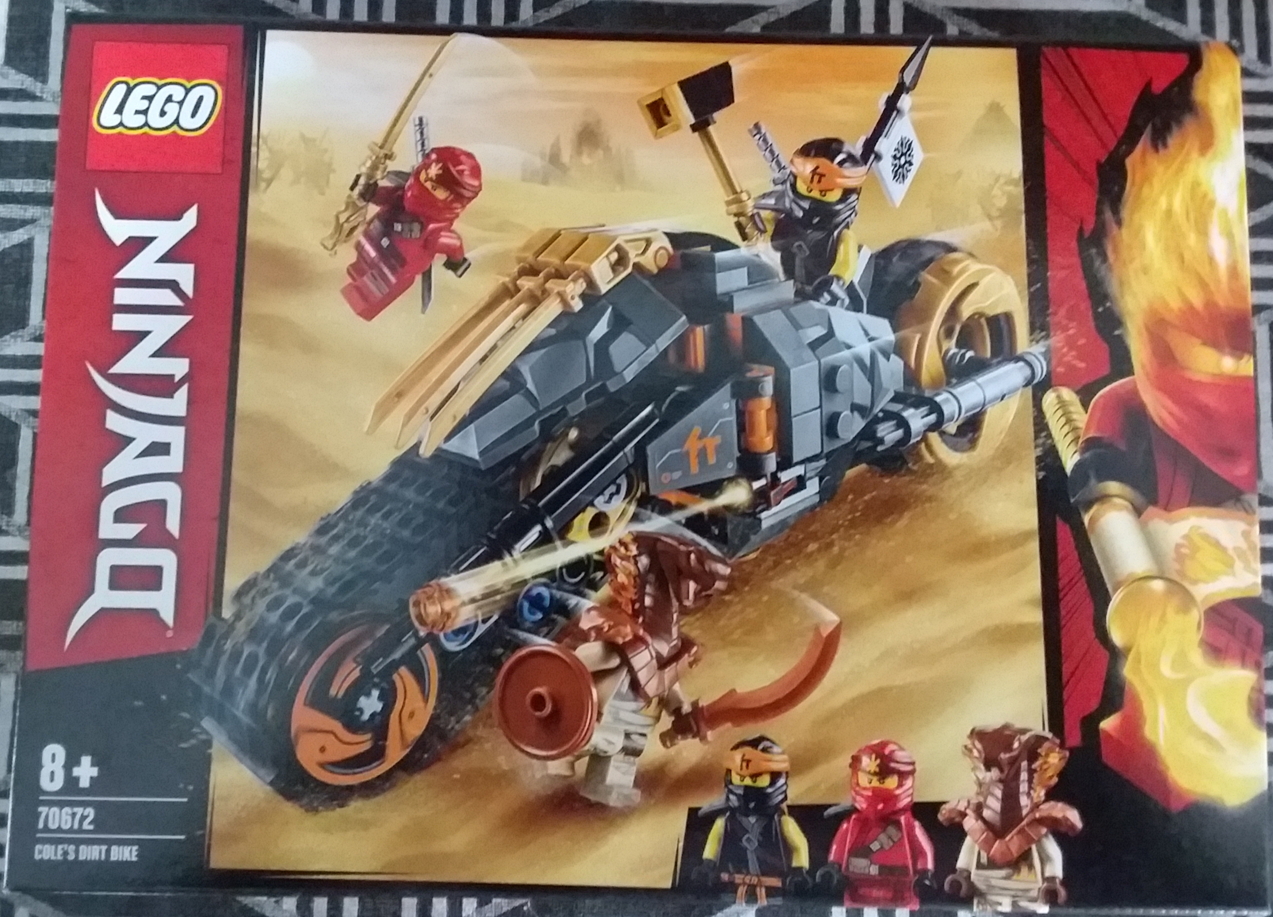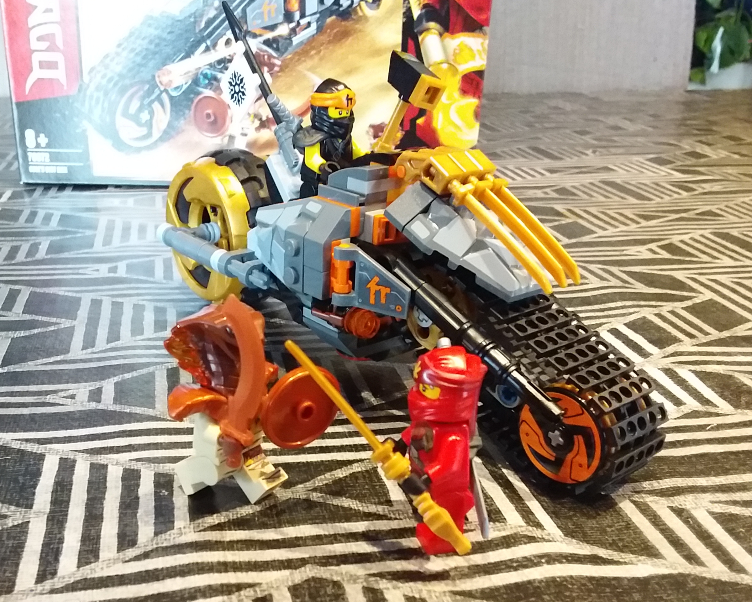 Voici une nouvelle revue Ninjago : le set 70692 permettant de réaliser une moto des sables pour le personnage de Cole, dans la saison feu et glace de la série Ninjago.