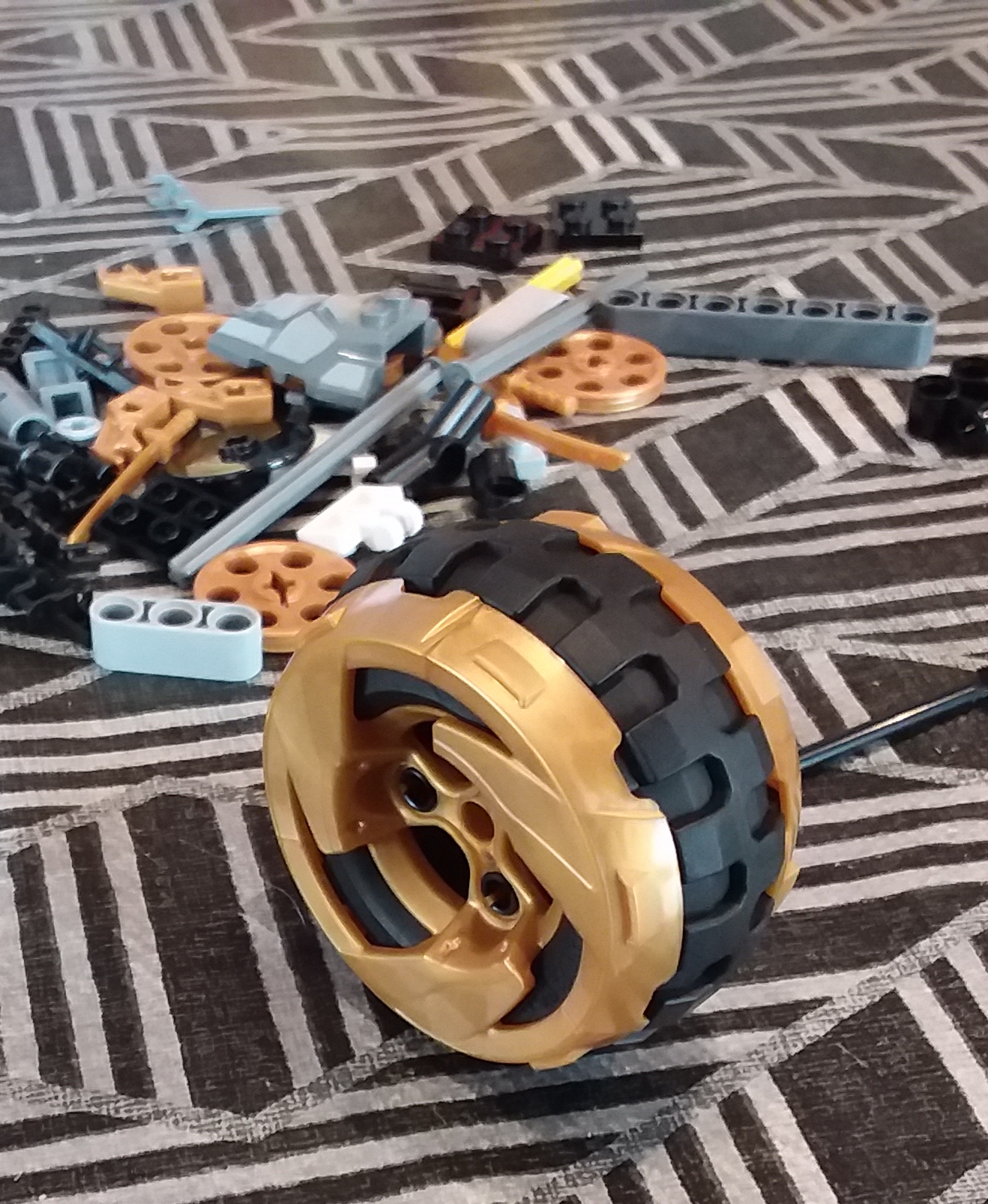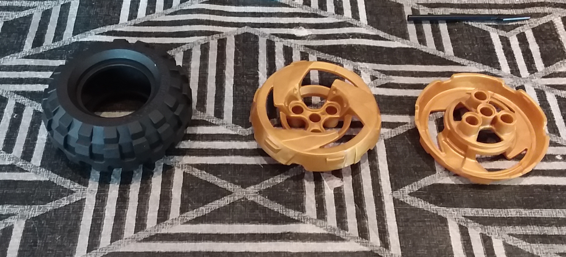 ) : la customisation de la roue à l'aide de 2 pièces dorées. Je suis plutôt satisfaite de l'embellissement de cette roue. Ça change des roues brutes.