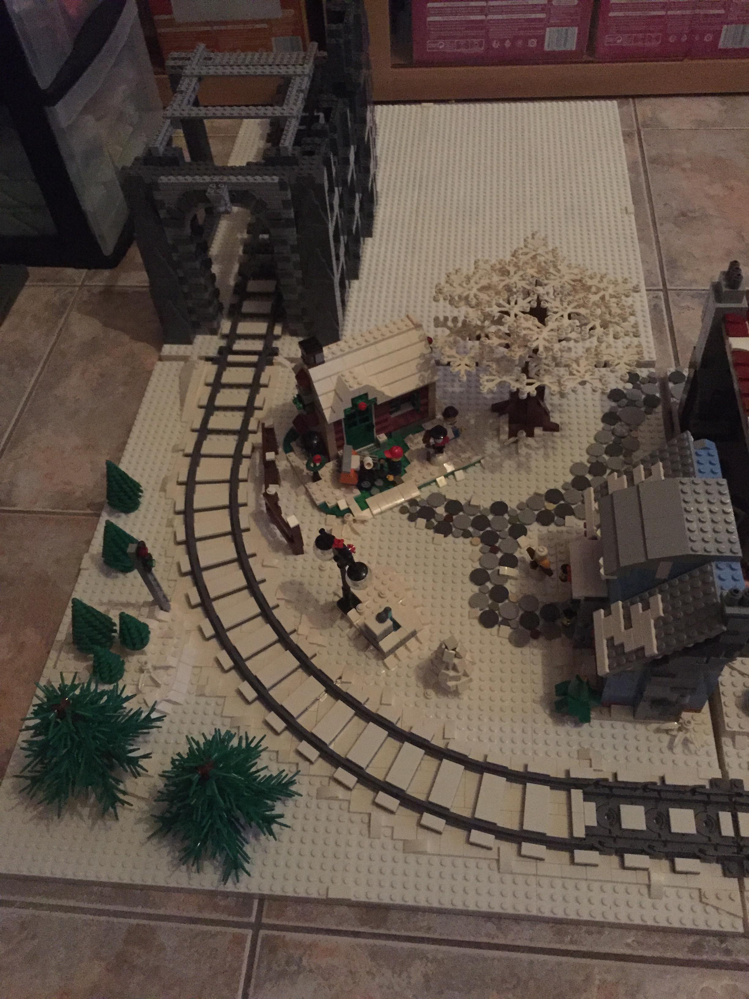 --> Sur la seconde zone, avec le cabinet de vétérinaire, la maison et le café d'altitude, j'ai fais un système pour avoir juste à poser les sets sur la zone, afin de faciliter le démontage et transport... Chose à quoi je n'avais pas pensé sur la première zone... Faudra que je rectifie le tir.