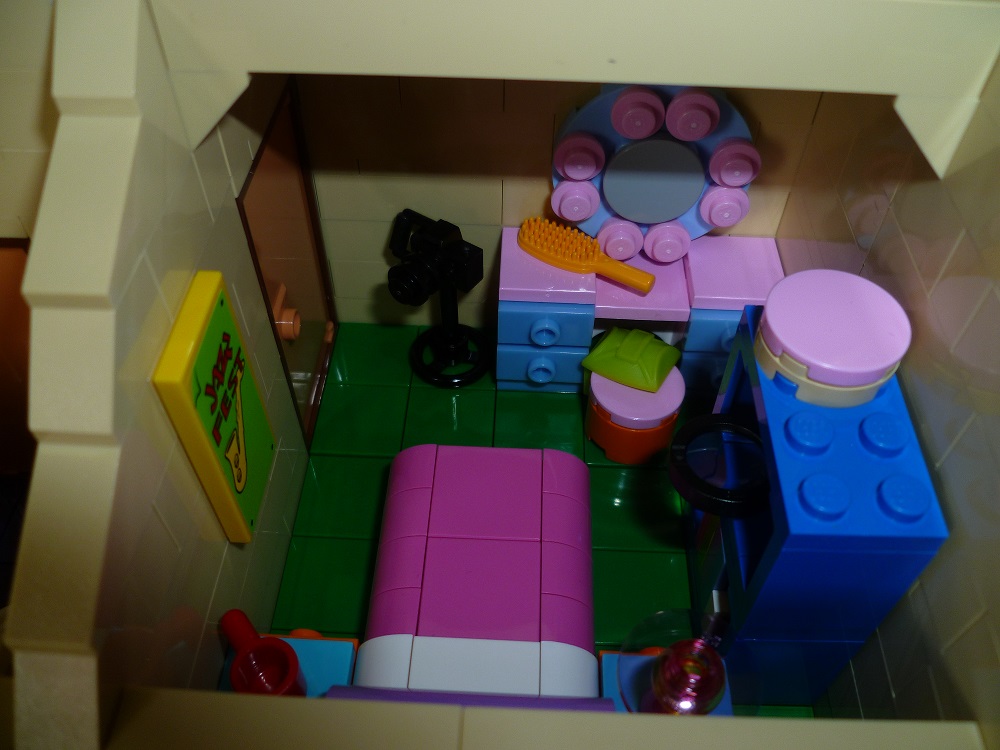 Effectivement, il y a plusieurs petites choses qui auraient pu être rajoutées : la cabane de Bart, une baignoire dans la salle de bains, etc... Mais globalement elle reste assez détaillée dans les chambres. Par contre dès qu'on y met une minifig, il n'y a plus de place du tout...
