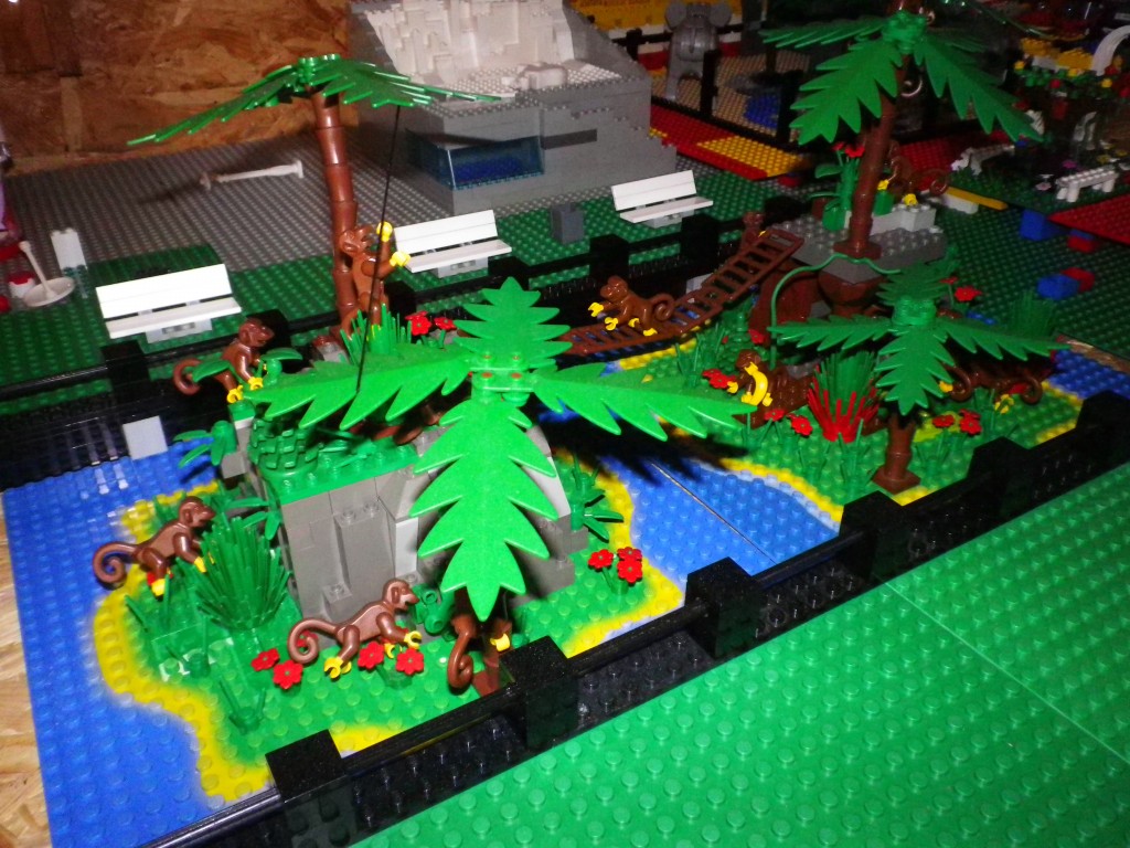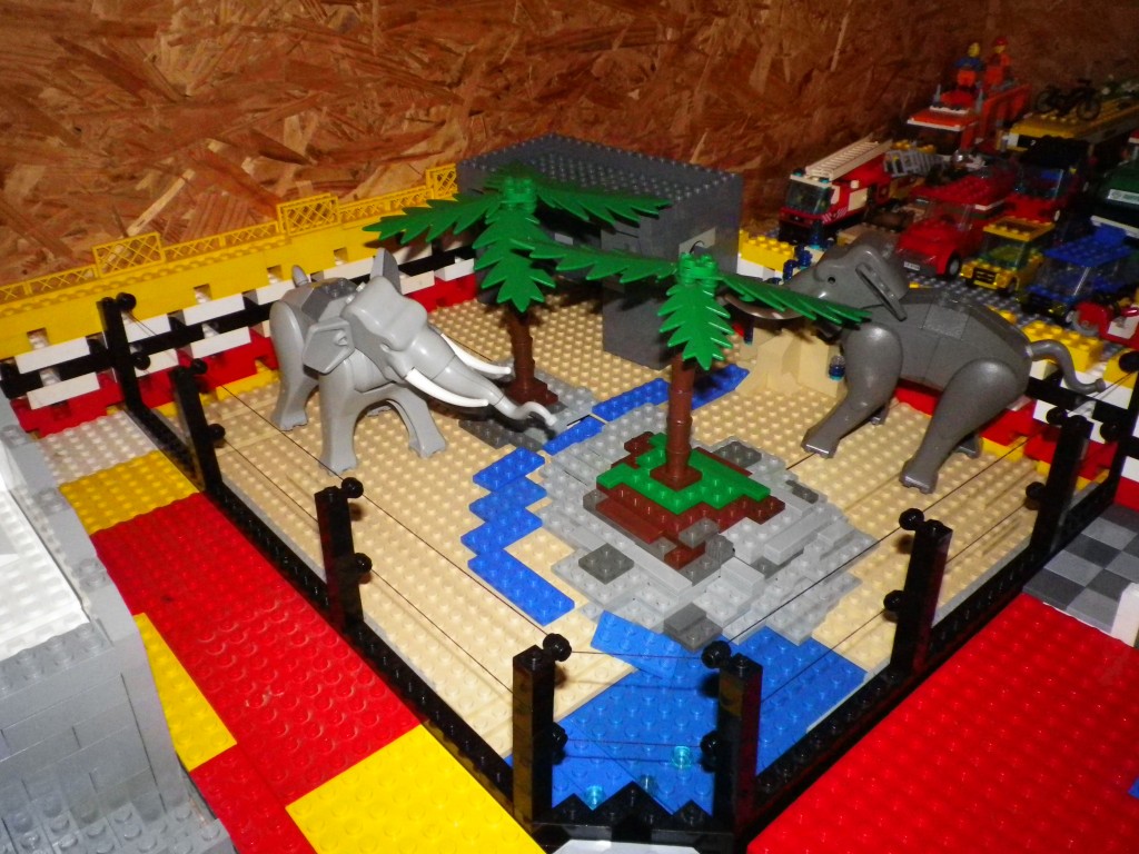 Mon idée de moc m’est apparue début janvier pour remplacer l’ancien zoo déjà présent mais plus à mon gout. Je l’ai construit sur 4 plaques grises et 12 plaques vertes. Il y a l’ours polaire dans son enclos (avec les pingouins qui sont en chemin), le bar/café issue d’un set Friends, l’enclos des éléphants, celui des singes et des chevaux (oui je sais des chevaux dans un zoo mais j’en avais plein !).