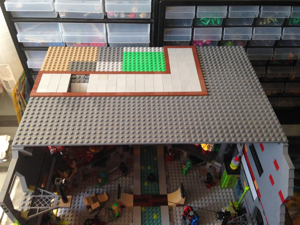 puis par dessus sur la moitié de la largeur faire une partie route avec une façade de bâtiment et certains véhicules des set TMNT.