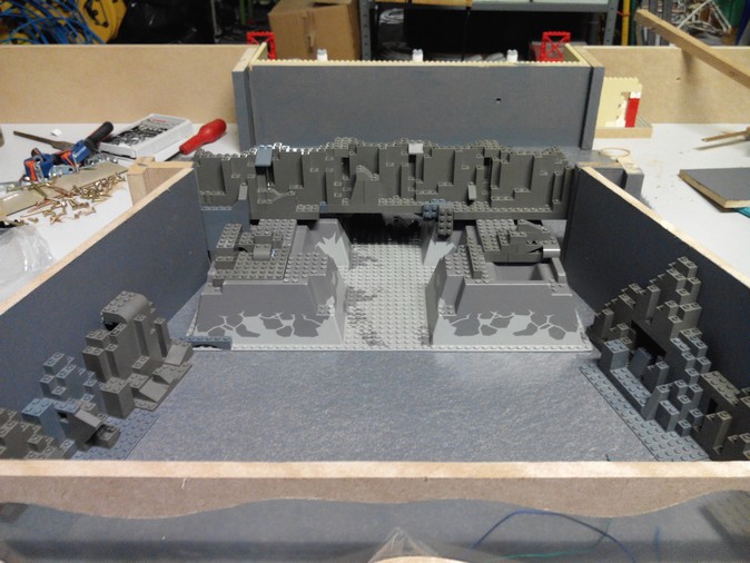 oui oui éclairage a LED plusieurs LED probablement dissimulées dans des briques ou dans une sorte de lustre dans la station, pour la mine éclairage a LED aussi, caché derrière la fenêtre plexi et peut être dans les roches.
