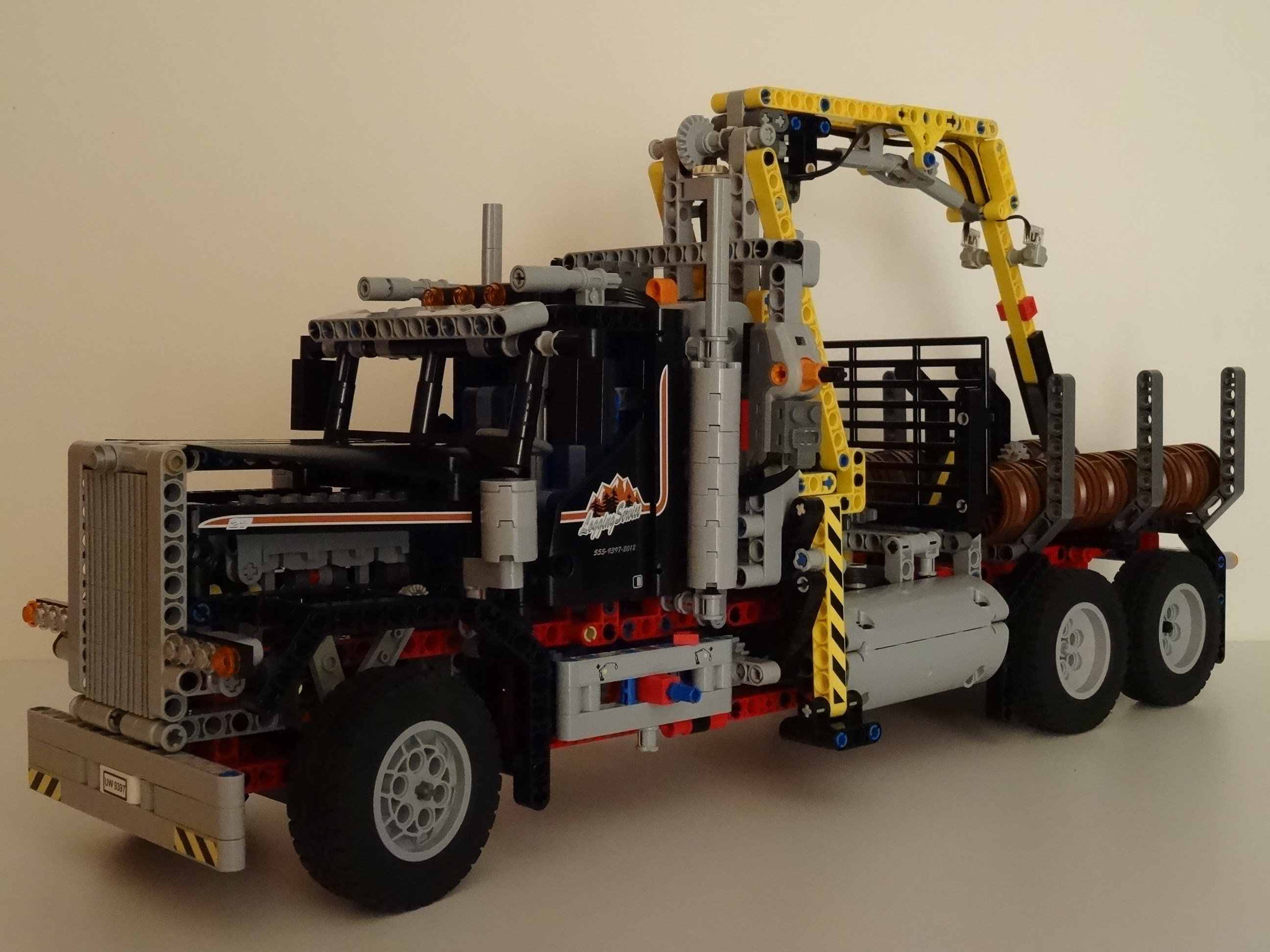 Comprend un grand moteur LEGO® Power Functions et un système pneumatique perfectionné pour diverses fonctions motorisées, notamment des stabilisateurs extensibles, un bras de grue automatisé.