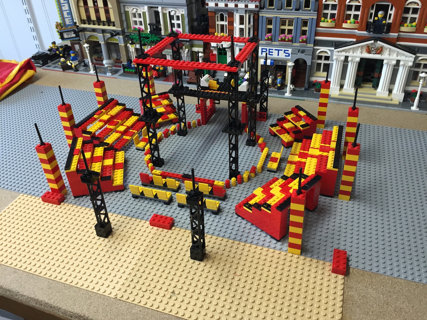 voila mon moc assez bien entamé déjà j'avais dans l'idée de réaliser un cirque depuis longtemps mais par manque d'inspiration j'avai mis cette idées de cote que j'ai repris il y a pas si longtemps j'ai donc réaliser ce cirque avec la contrainte de pouvoir tout mettre et ranger sur semi-remorque comme un vrai.