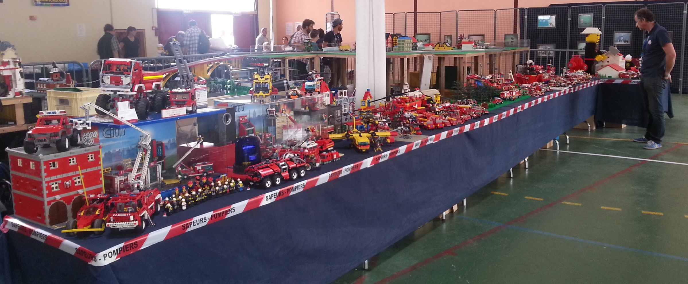 Je possède un stand de 18m² sur l'univers des pompiers chez LEGO avec de nombreux modèles de 1958 à maintenant, issus de tous les thèmes (Technic, City, Fabuland, System, Jack Stone, etc ...). Je n'ai pas encore attaqué les DUPLO sinon il faudrait doublé la superficie !