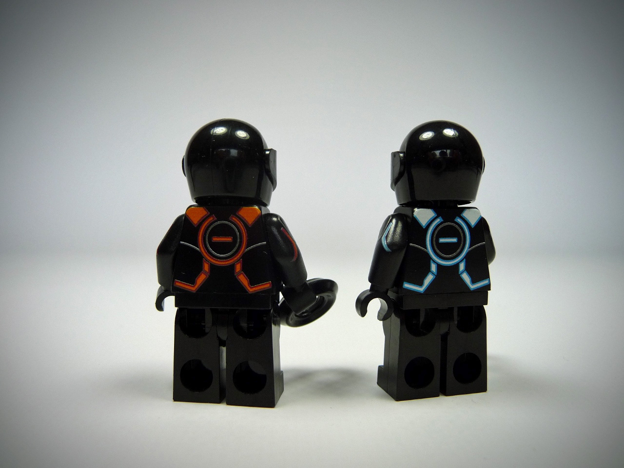J'ouvre le bal avec un binôme que j'aime bien issu de Tron. Mes 2 premières minifigs customs. 2 belles minifigs avec Backprint et Print sur les bras. Le disque est également custom.