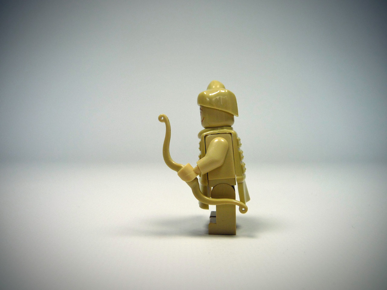 Sobre, monochrome. Equipée de 3 accessoires customs très bien réalisés. L'Arc, le chapeau et l'armure. Je l'adore!