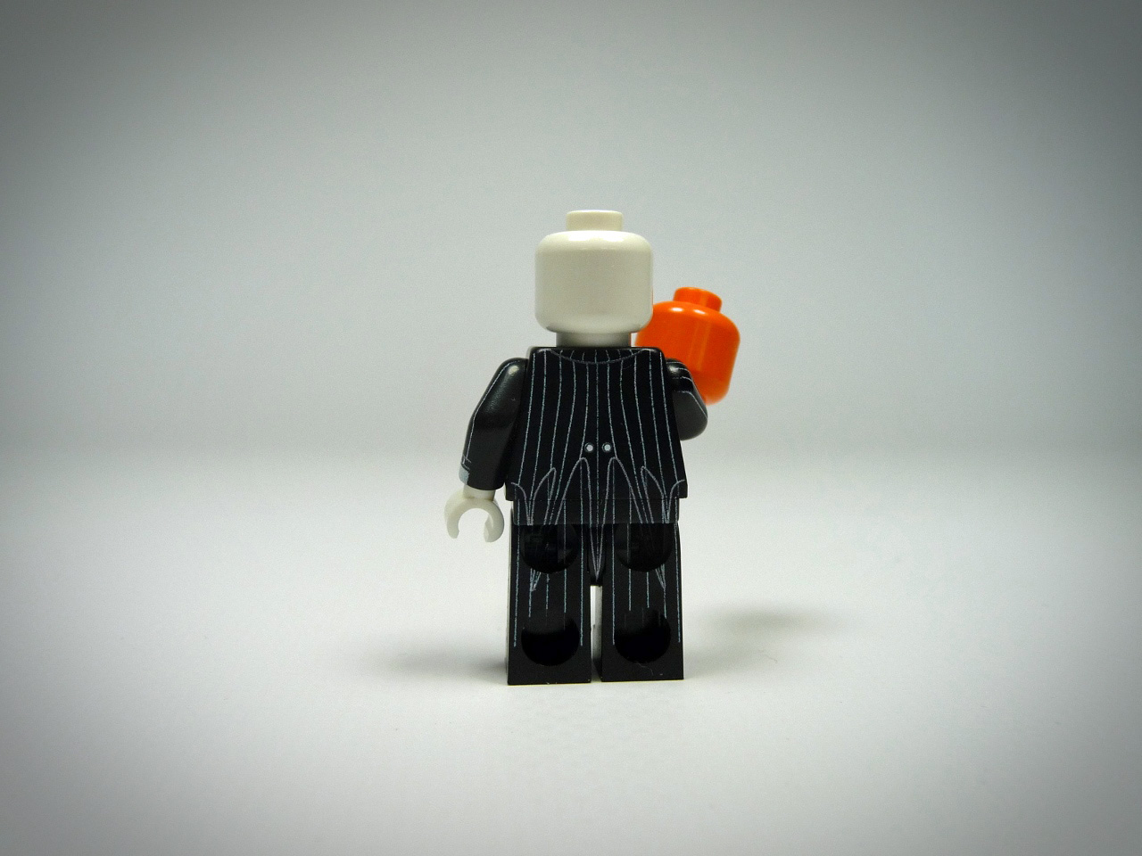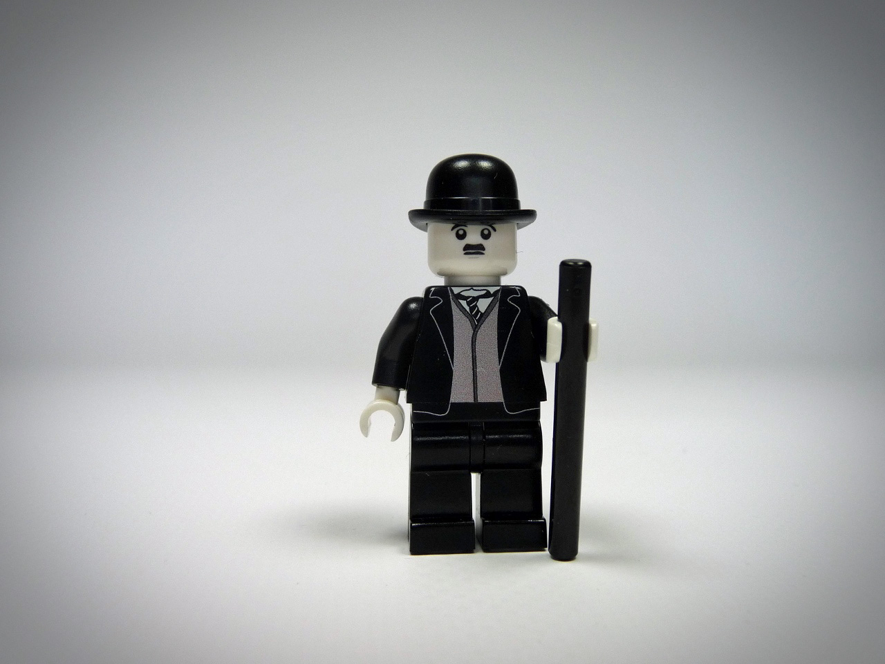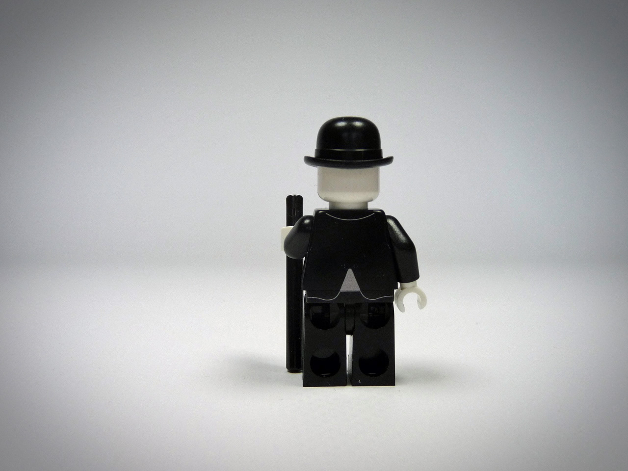Très jolie Minifig. Toute simple, elle pourrait vraiment être issue de chez Lego. Les accessoires sont d'origine (chapeau melon et canne). La sérigraphie est simple mais très soignée. J'aime particulièrement le fait que le créateur de cette minifigurine ait choisi une tête et des mains blanches pour rappeler le cinéma "noir & blanc"