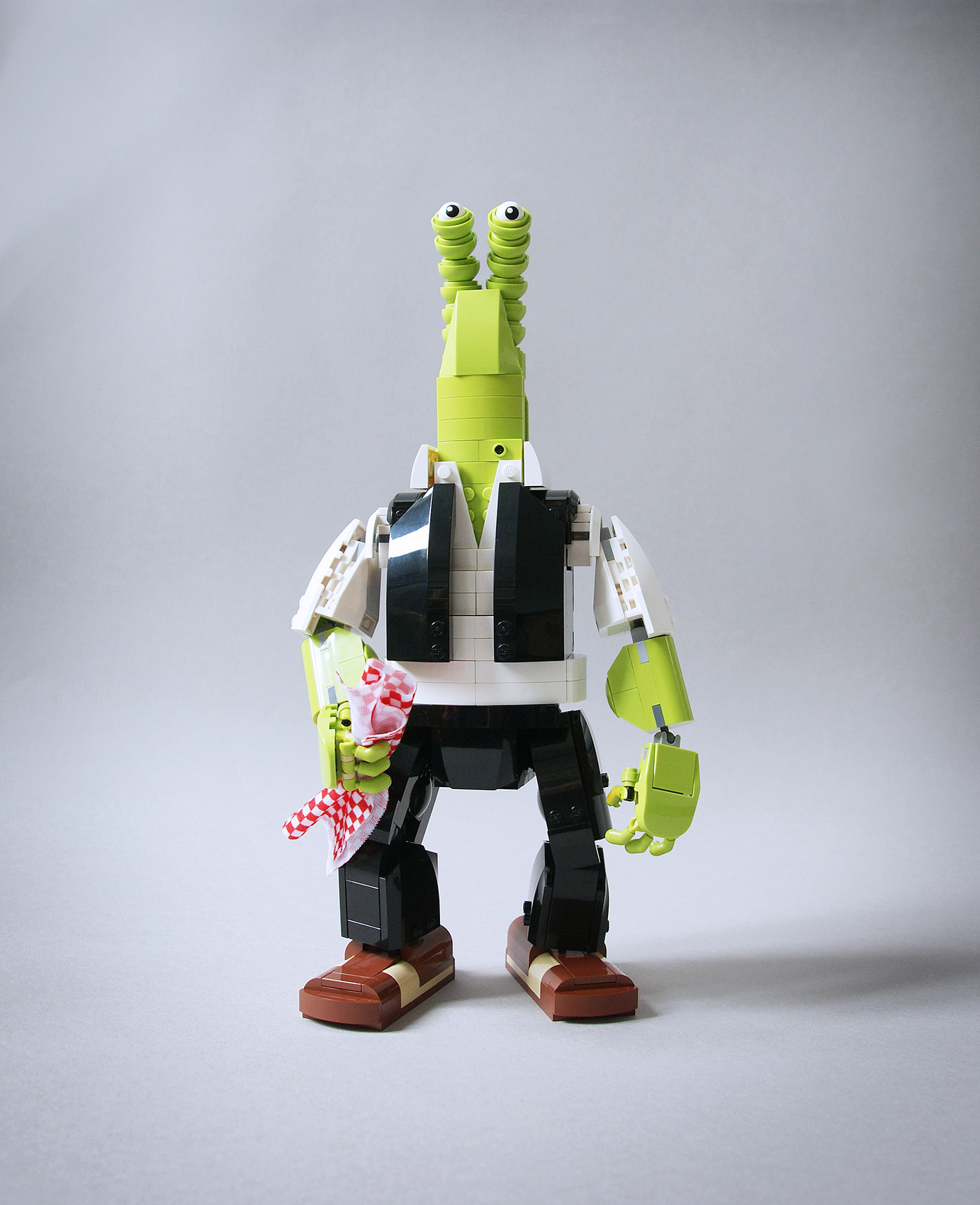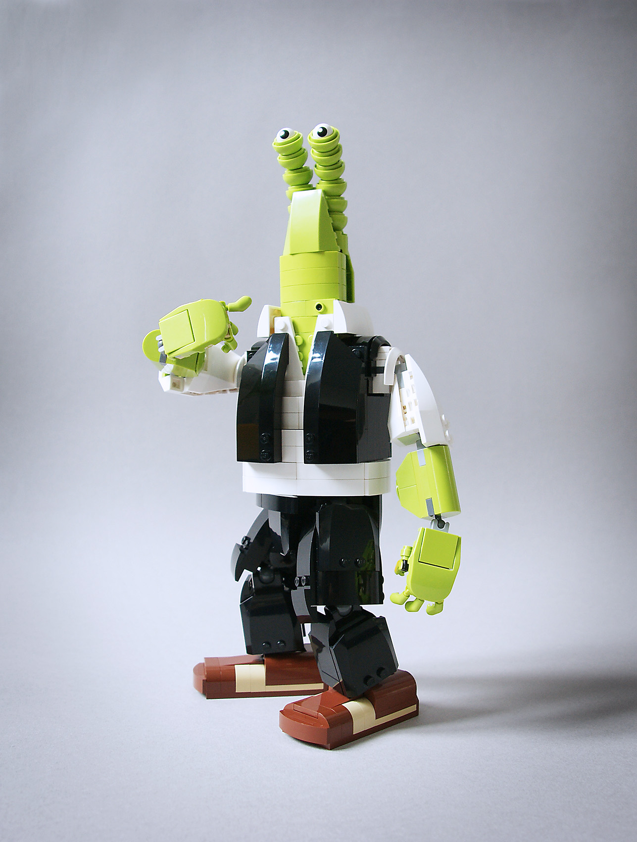 j'ai du faire quelques compromis tout de même au niveau de l'habillage (bras et jambes). les articulations ne devant pas être genée par une brique.