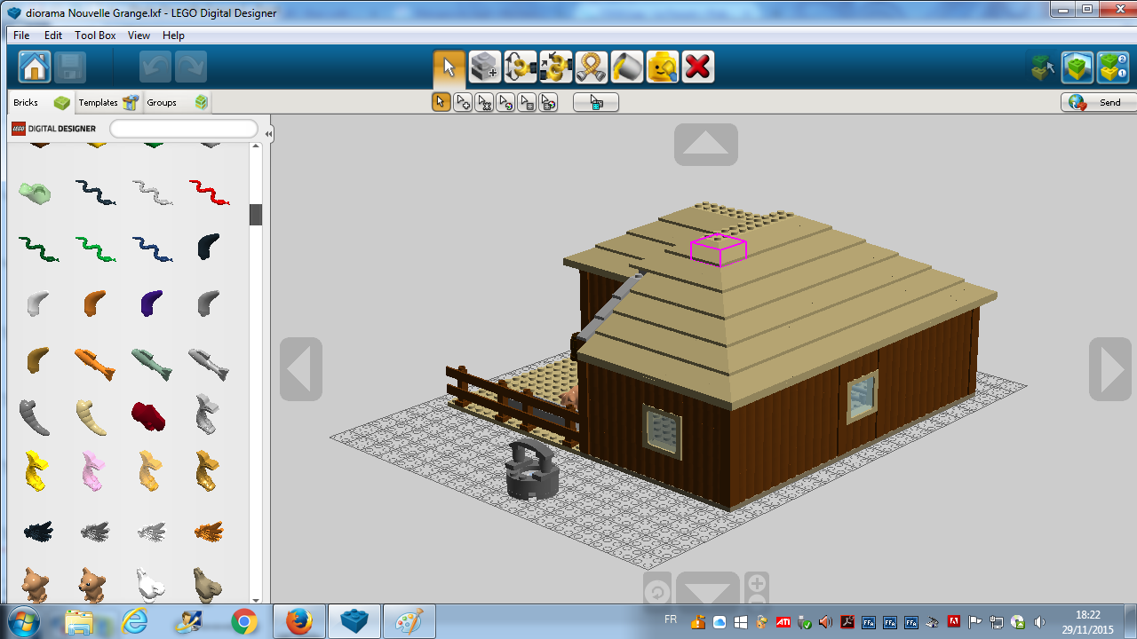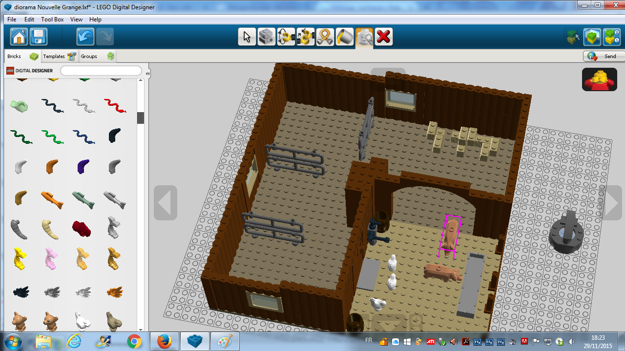 Pour les "trous" dans les murs c'est a cause d'une modif de dernière minute, j'ai retravaillé la stabilité des murs il faut donc que je recommande de pièces en plus. la porte blanche est juste la pour décorer, elle sera marron. J'ai décide de faire un toit que l'on puisse retirer pour accéder a l’intérieur. j'attend cette semaine quelques pièces pour le champ qui sera autour.
