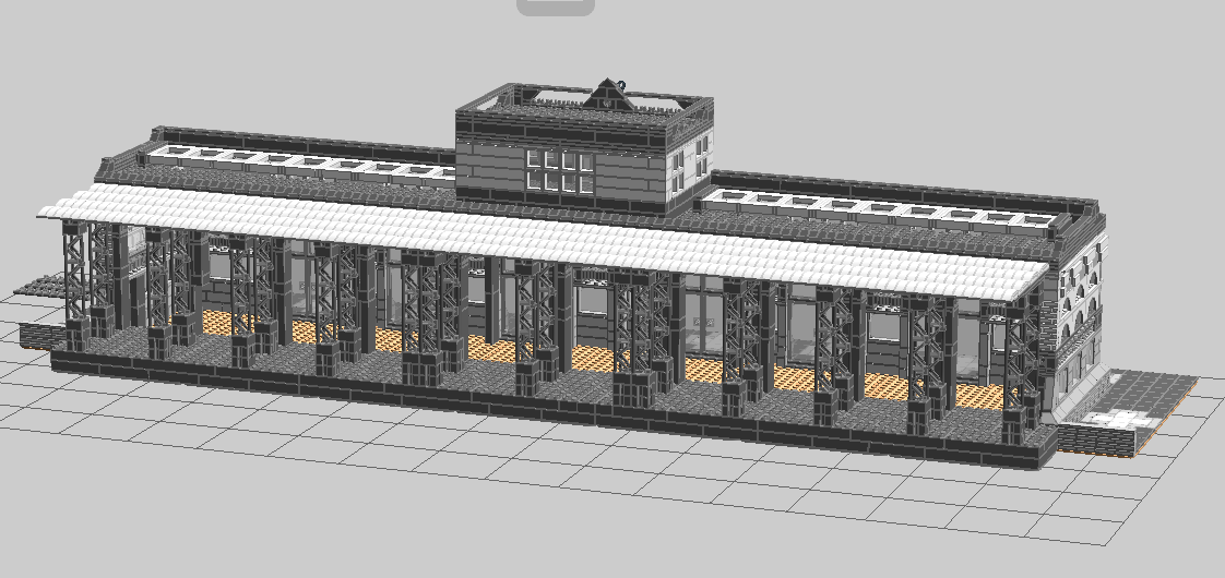7 et 8 : la gare se sépare en deux parties égales, relié via 2 pins au sol, il suffit d'enlever une tile 2 x4 et 2 plate sur la base du support du toit pour les séparer. Elle est faite sur 4 base plate tan de 32 x 32 (oui oui celles que j'ai acheté samedi dernier...)