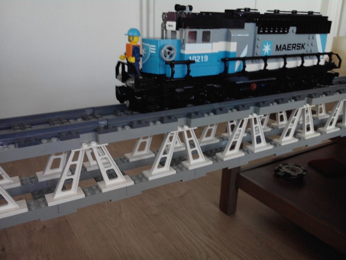 oui pour 103cm flexion de 4mm avec le train maersk complet et motorisé, j'ai fait le teste avec le train le plus lourd que j'ai, pas la peine de mettre 4kilos!!!legoman a écrit :Comme j'ai déjà dit, il est très bien ce pont; 103 cm de long as-tu mesuré la flexion au milieu avec une charge exemple 500 grammes ou plus. Pour des fortes charges, je pense que le technic est quand même plus approprié ( cela n'engage que moi )