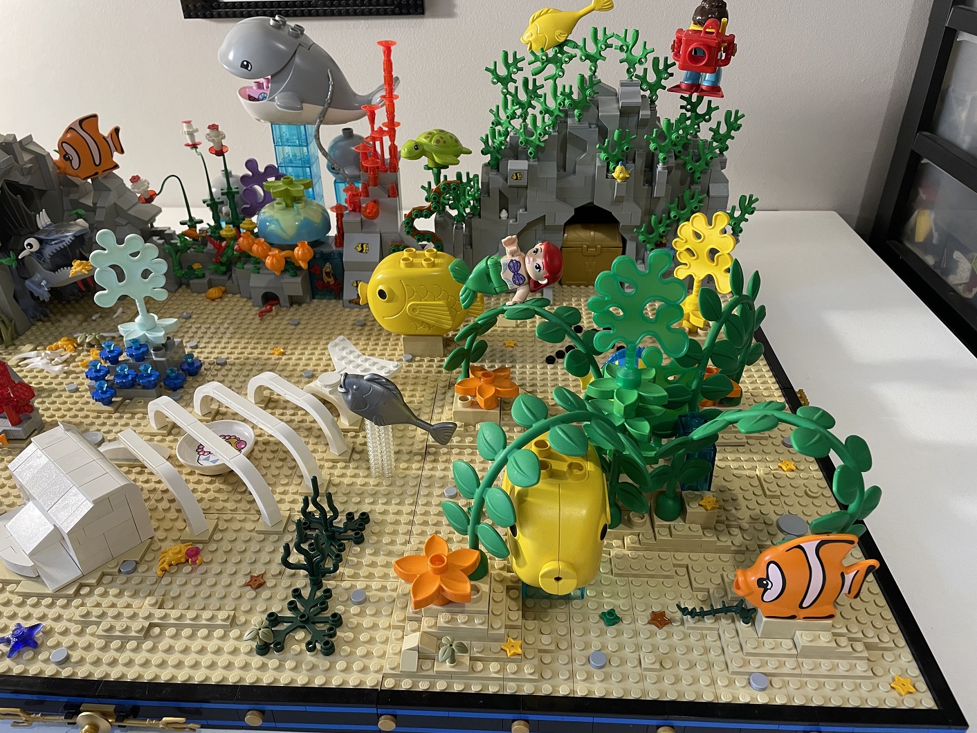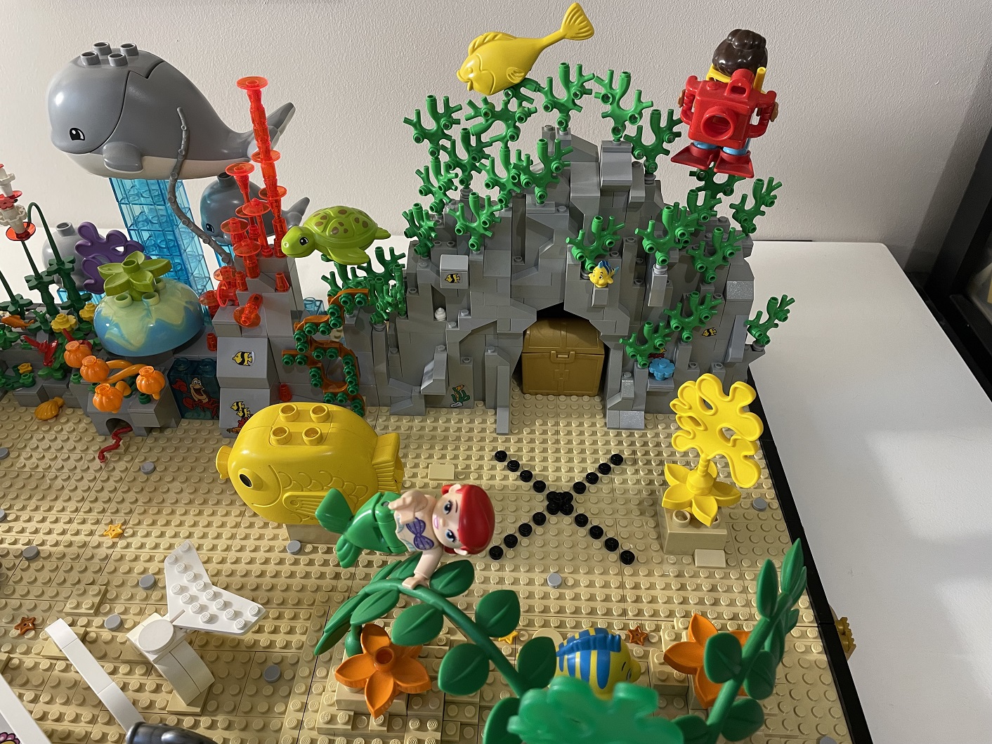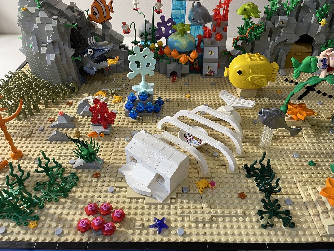 ci-dessous mon dernier MOC : un fond marin avec du DUPLO !