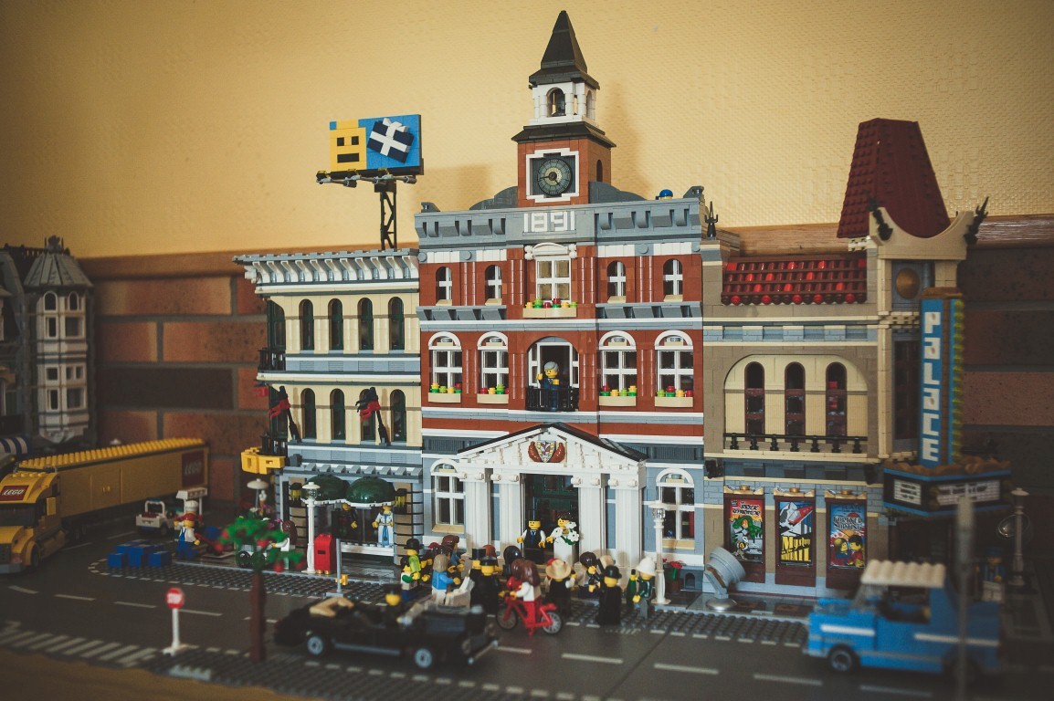 Du coup il y a eu du clin d’œil légo sur mes menus, marque place (que les invités pouvaient emmenés en souvenir et mettre sur le frigo puisque cétait monté sur un aimant), mes urnes (vin d'honneur et repas) des sets mariés sur les tables et gateau (que je n'ai pas en photo) et une table avec quelques modulars dont la mairie où on voit une sortie de mariés ^^!