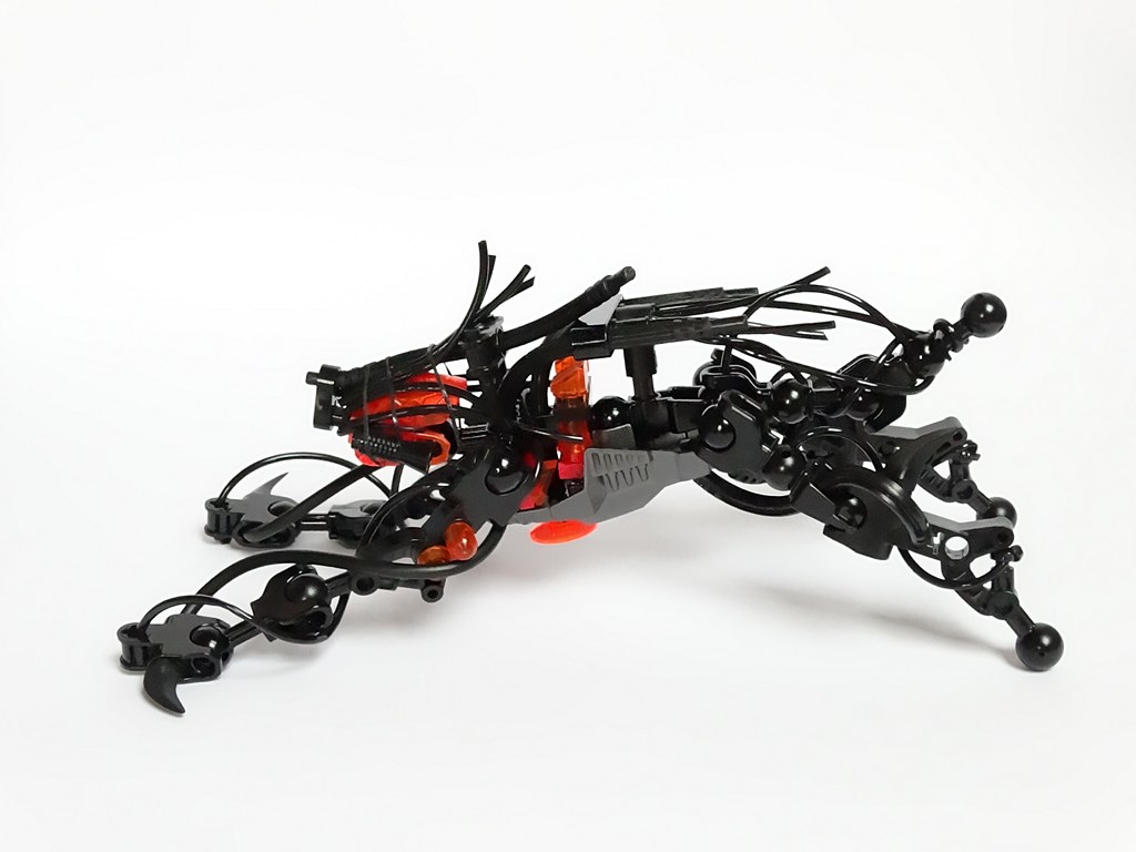 J'ai utilisé pour le faire des bionicle (ou hero factorie, enfin dans le style) et des pièces flexibles pour les tentacules, et aussi des scoubidous et élastique pour plus de détails au niveau des tentacules,ça ne plaira peut être pas à tout le monde mais moi je trouve que c'est utile et peu coûteux de faire "de la récup" pour faire des customs