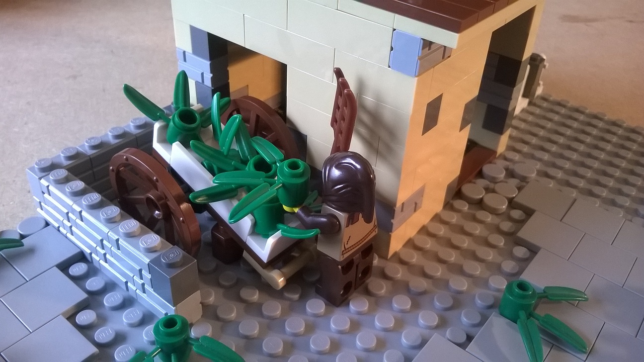 D'ailleurs, le coin où le chien se trouve manque pourrait être l'endroit où entreposer des ballots de paille pour les chevaux (briques jaunes par exemple).