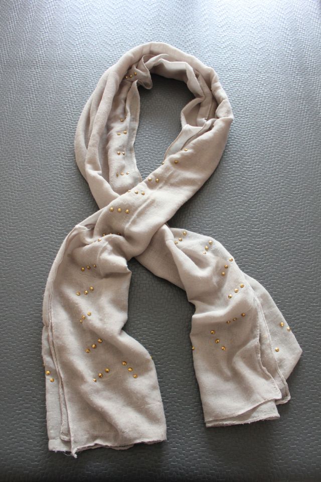 -une écharpe grise avec des straces dorés.