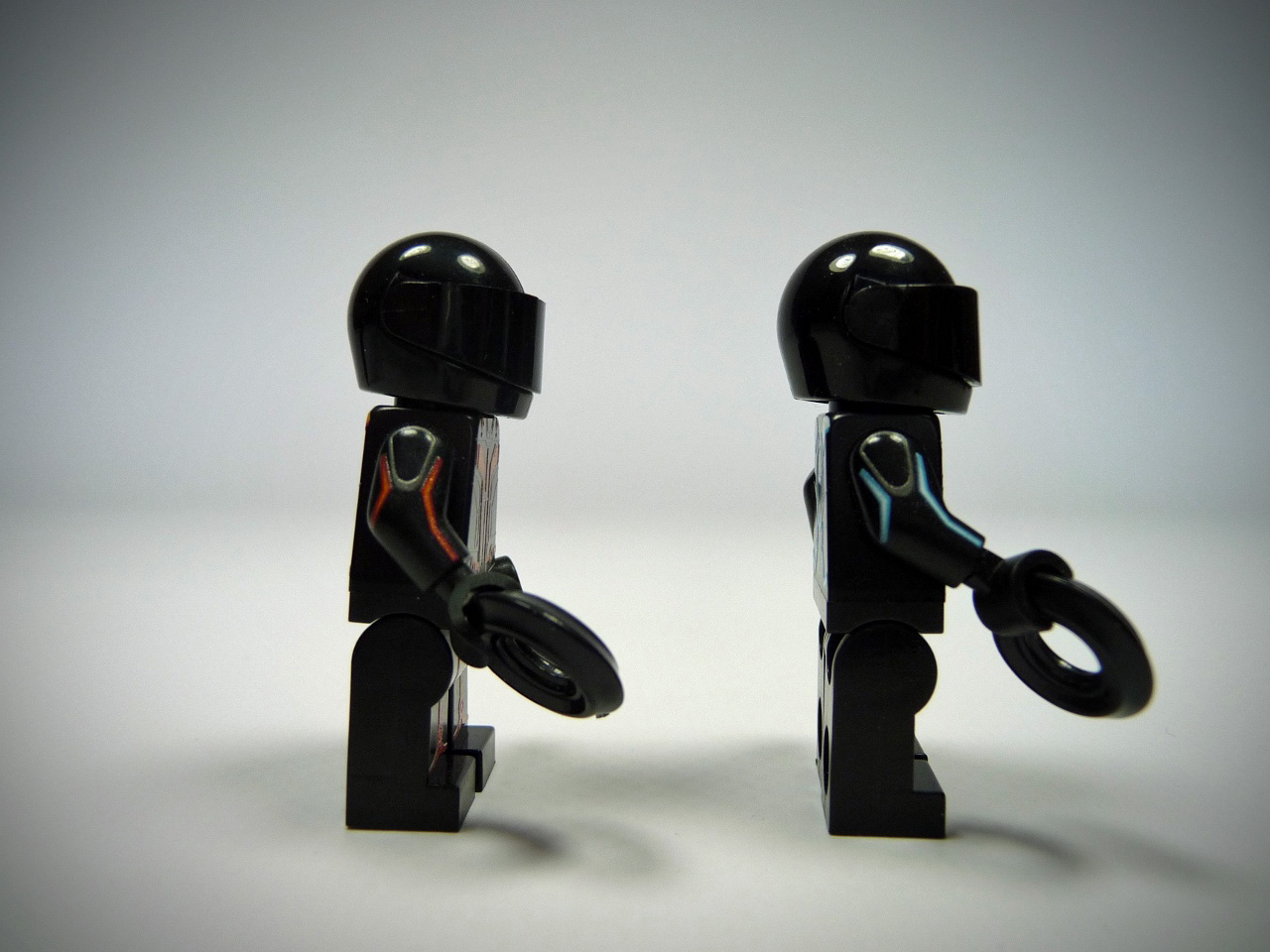 J'ouvre le bal avec un binôme que j'aime bien issu de Tron. Mes 2 premières minifigs customs. 2 belles minifigs avec Backprint et Print sur les bras. Le disque est également custom.