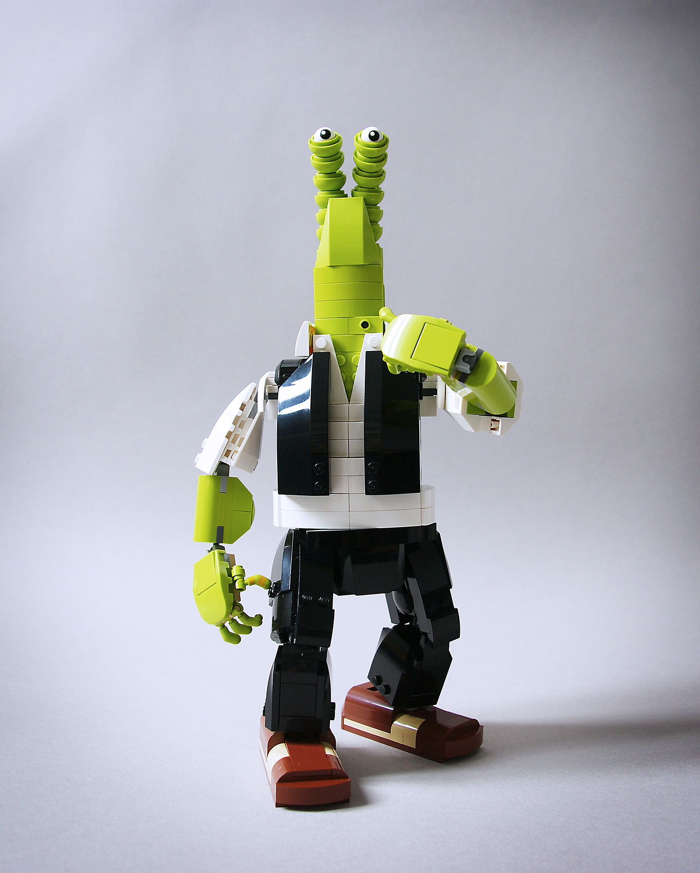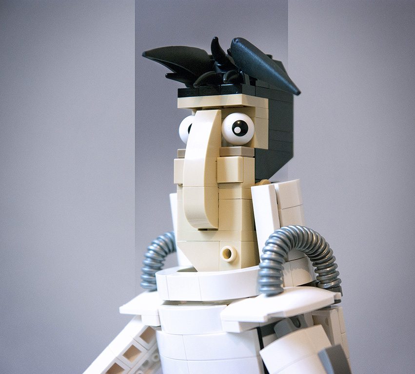 j'ai du faire quelques compromis tout de même au niveau de l'habillage (bras et jambes). les articulations ne devant pas être genée par une brique.