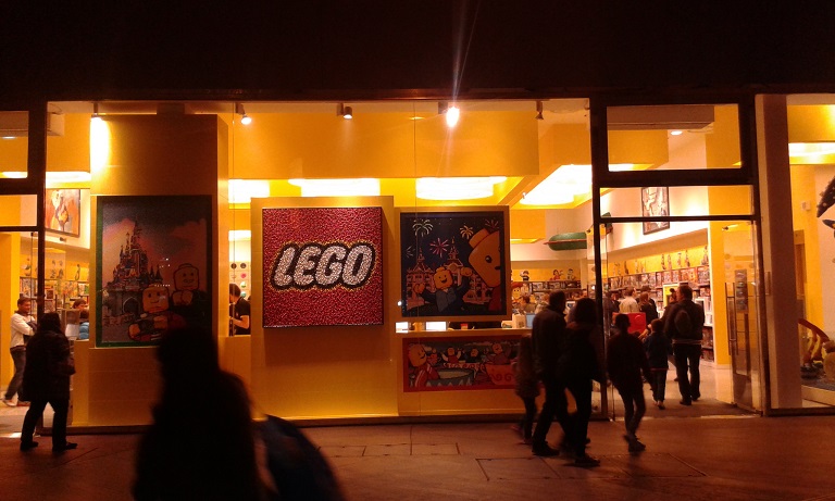 Lors de ma visite à Disneyland Paris il y à deux semaine, j'ai aperçu un [highlight=#ffff00]lego store[/highlight]. Le magasin se trouve dans le disney village. Il est grand, je dirai plus grand que celui de euralille. Mais pas plus de choix car il était en rupture de wall e comme ici et en rupture de petite boite halloween sortie récemment et niveau du mur de brique je dirais qu'il y avait à peu près les mêmes pièces qu'ici. Il est surtout plus grand au niveau du passage, les allées sont grande et le mur de brique très large. Niveau prix, les mêmes qu'au store de euralille.