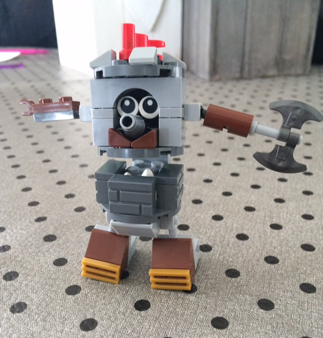 Tout d'abord Camillot , mixels en forme de tour avec son nez qui peut être assimilé à un canon . Mixels assez sympathique dans l'ensemble , il est livré avec une hache à double tranchant. ces monstres sont sympathiques car pas mal de petites briques masonery