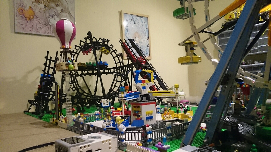 J'ai pas retouché la grande roue, seul le système de motorisation pour éviter que le moteur tourne à plein régime. Pour le mixer j'ai retiré la remorque pour le transformer en manège fixe. Plus tard je rajouterai un quatrième bras avec la couleur vert.