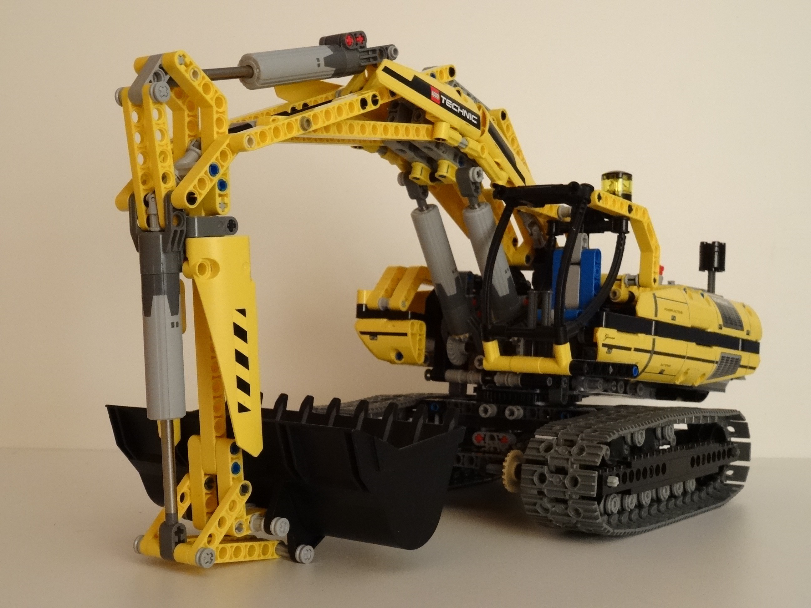 Utilise les leviers pour articuler le bras, soulève et abaisse la pince, fais tourner la superstructure et conduis les énormes chenilles pour manoeuvrer cette énorme machine !