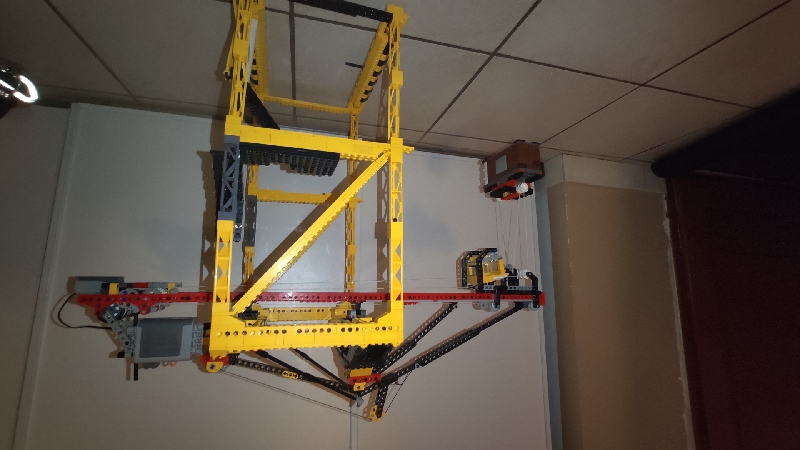 je construit un portique pour le chargement des containers sur un bateau, je viens de passe l'étape de motorisation du levage et de la translation du chariot, le tout avec un seul moteur qui fait les 2 fonctions, soit monter/descendre soit avant arrière tout en gardant le container à la même hauteur.