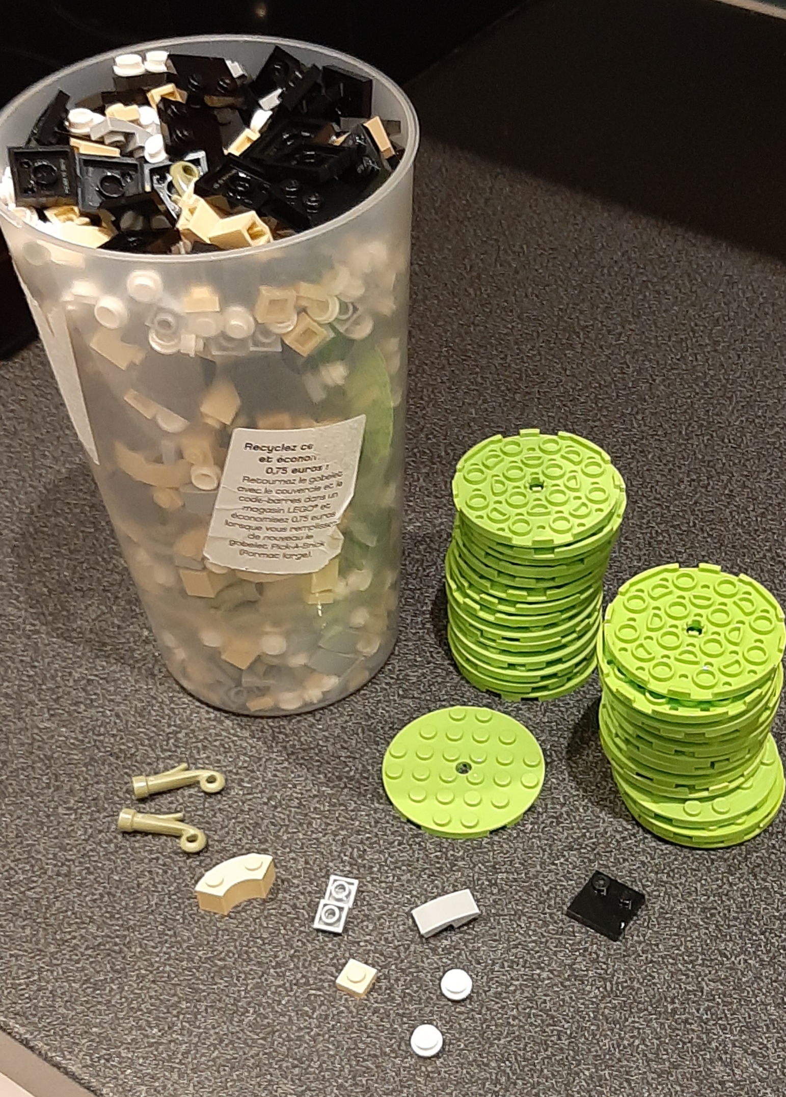 J ai fait comme la dernière fois, un grand gobelet de pièces non facilement optimusable en rangement et pelletée bonus en plaque 8x8.