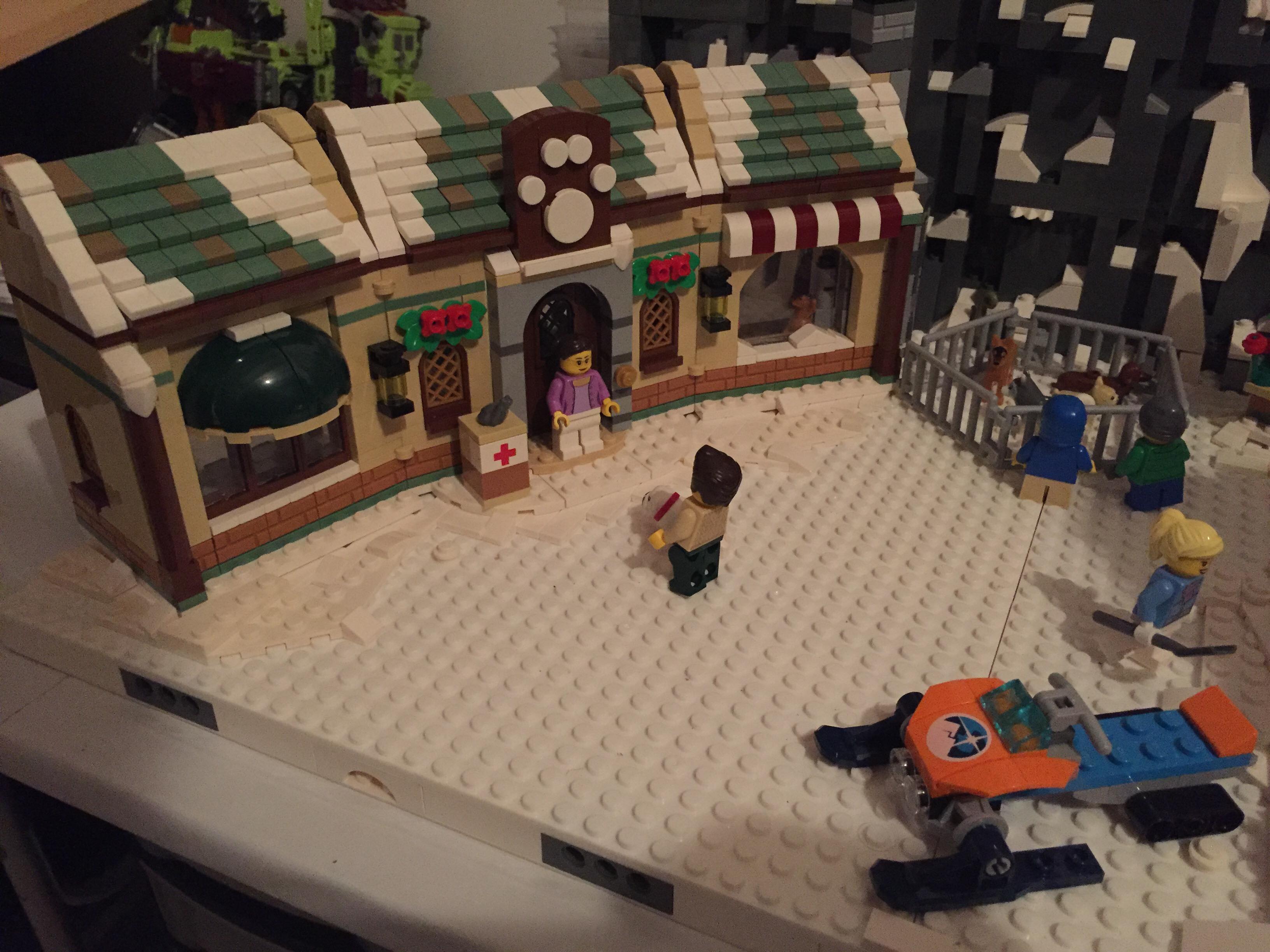 --> Sur la seconde zone, avec le cabinet de vétérinaire, la maison et le café d'altitude, j'ai fais un système pour avoir juste à poser les sets sur la zone, afin de faciliter le démontage et transport... Chose à quoi je n'avais pas pensé sur la première zone... Faudra que je rectifie le tir.