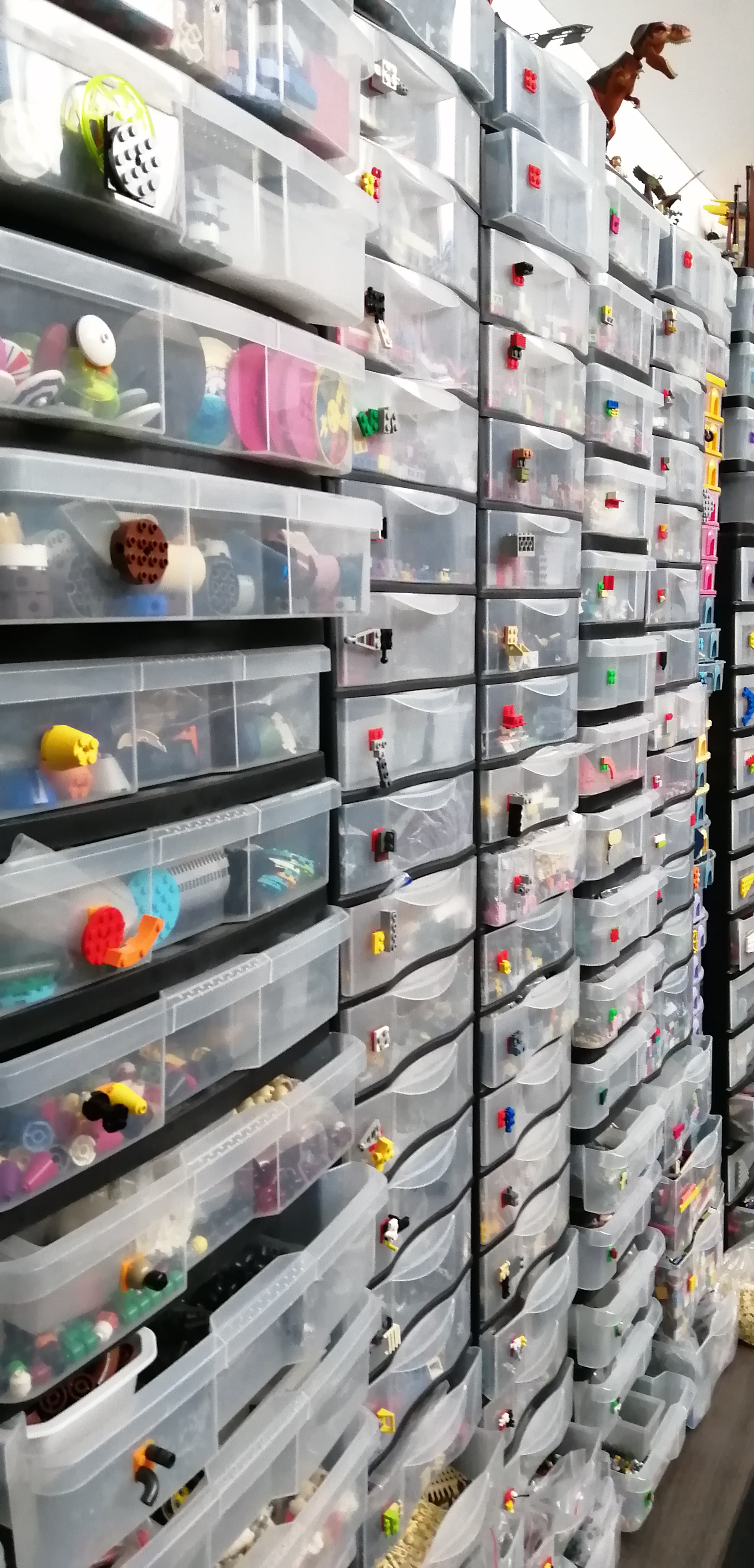 Quand je vois ces grands pans murs de briques je suis impressionné, il faut tout même avoir pas mal de place, mais quand on possède un très grand nombre de Lego ce type de rangement est indispensable. Par curiosité, un pan de mur de les vôtres, représente combien de Lego de combien et familles ?