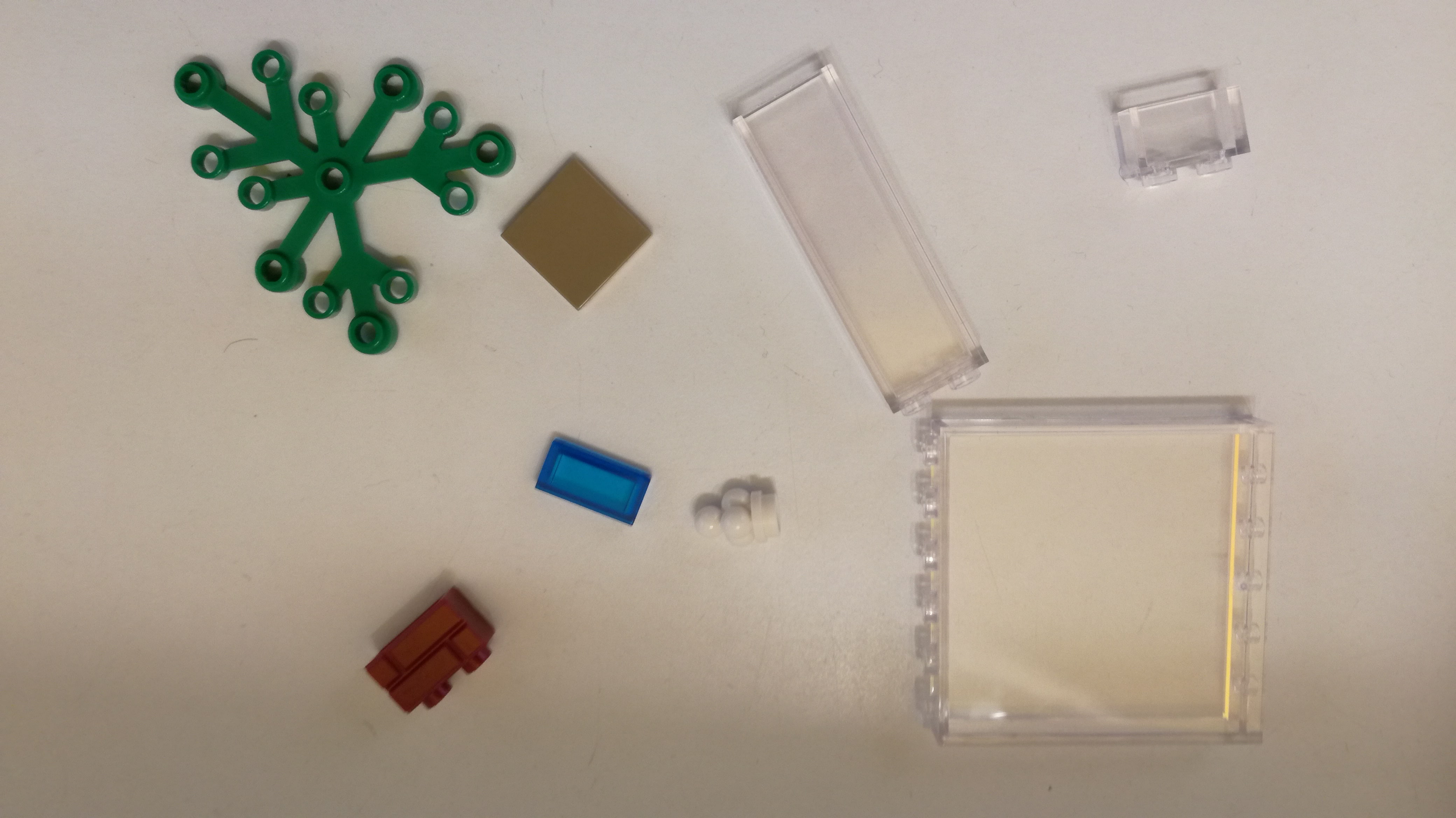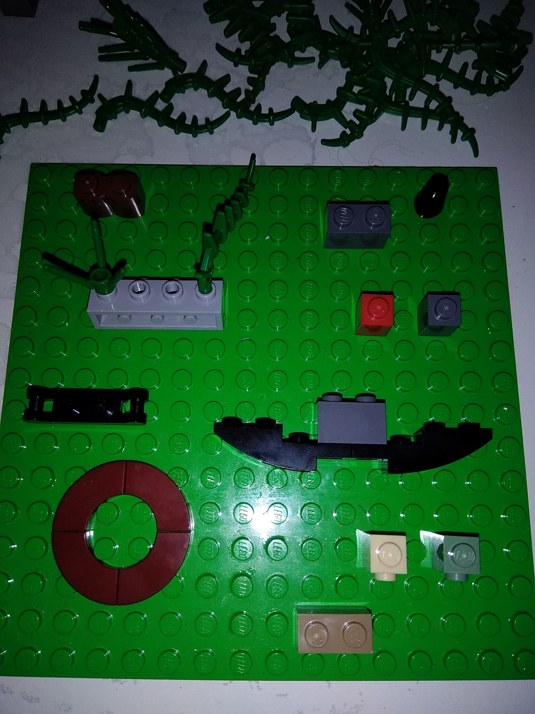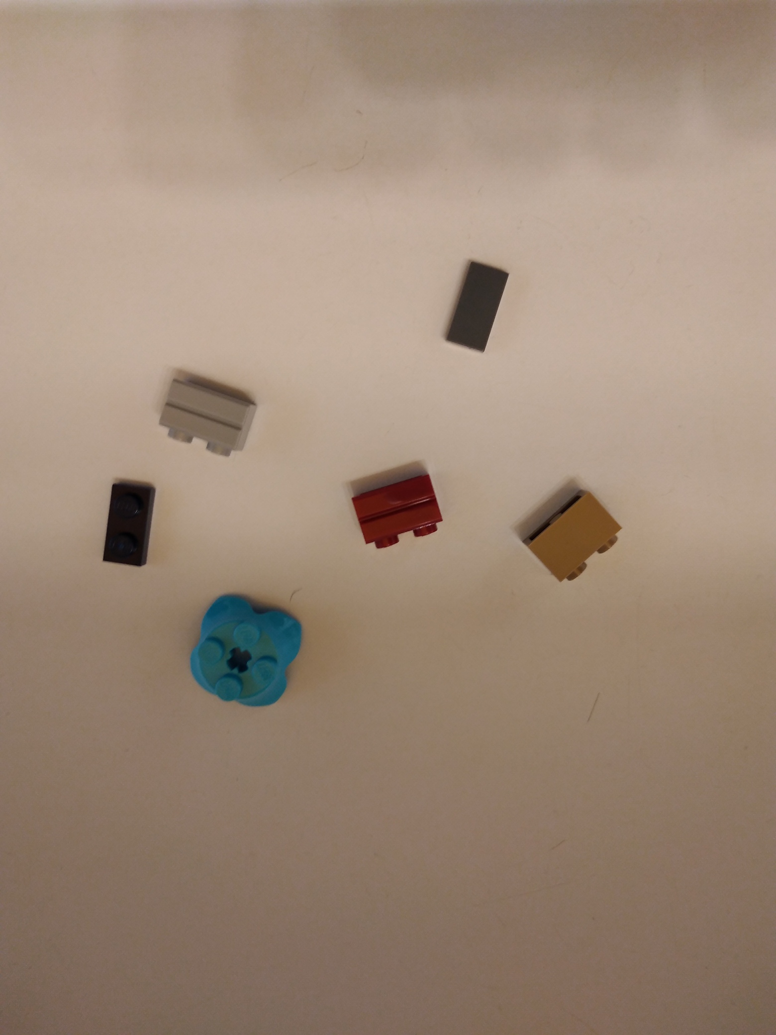 Désolé j'ai pas eu le temps de prendre une photo de toutes les pièces mais Il y a de la masonery en dark red et gris clair ainsi de la tile en 1*2 gris foncé.