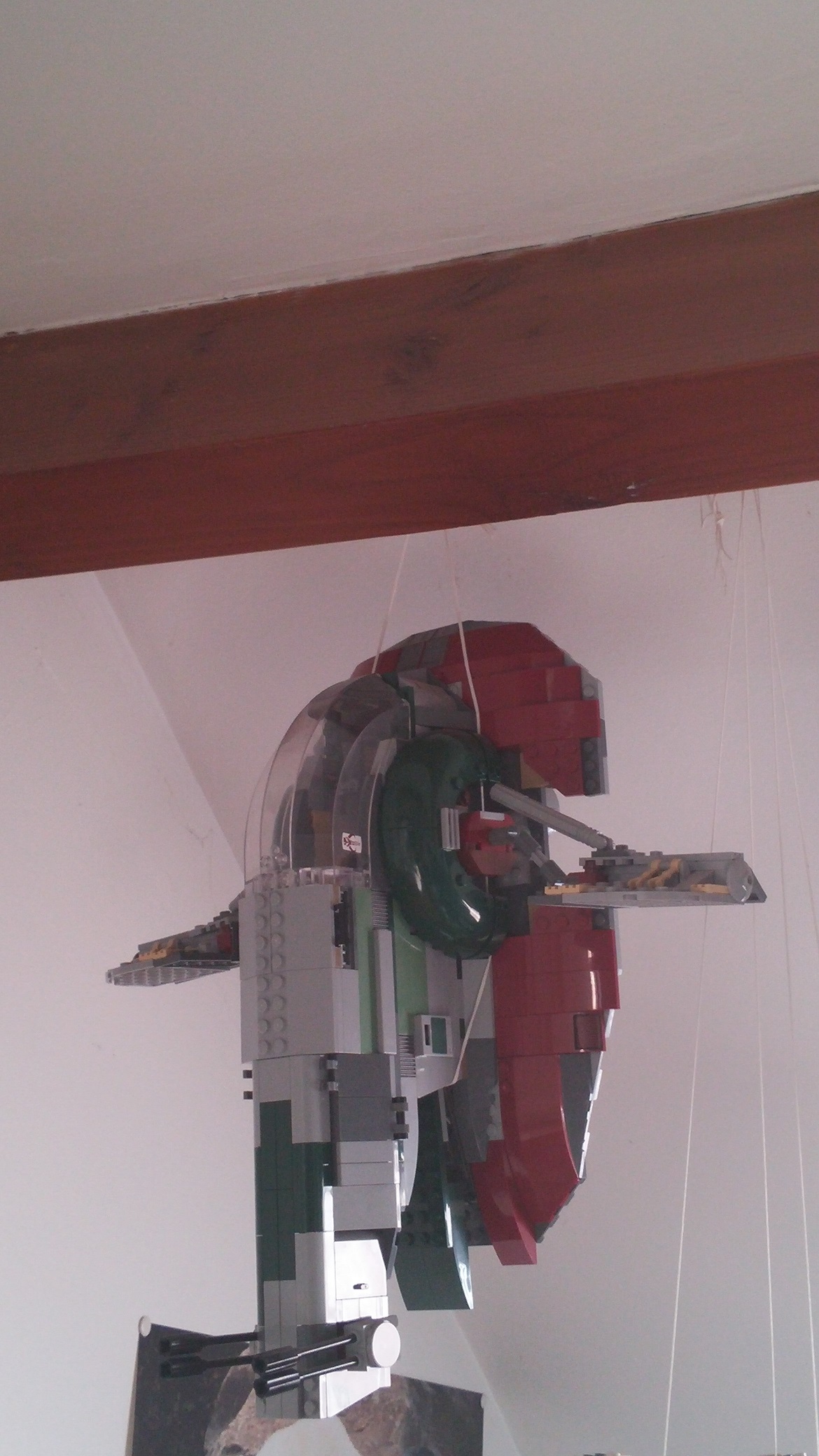 pour la suspension le fils de pèche marche très bien et ce vois beaucoup moins