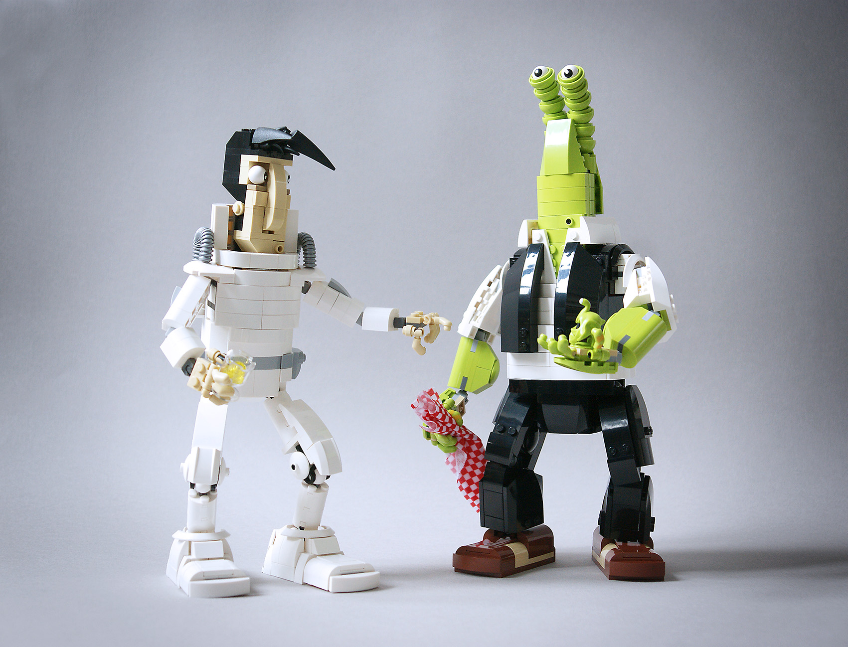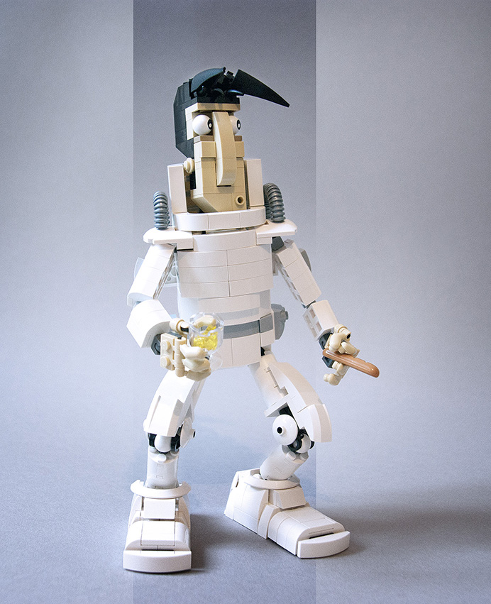 j'ai du faire quelques compromis tout de même au niveau de l'habillage (bras et jambes). les articulations ne devant pas être genée par une brique.