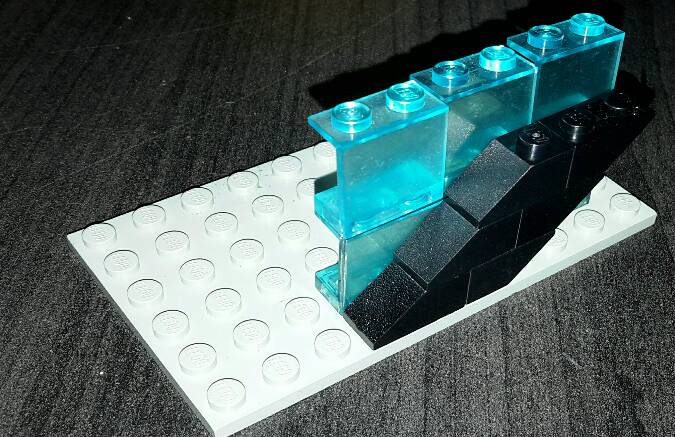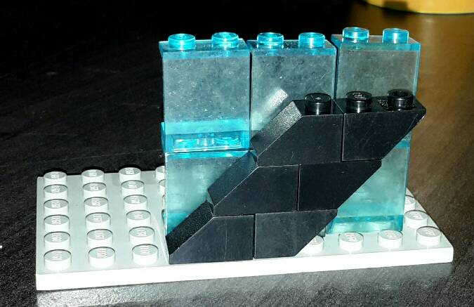 En fait le,montage est sùr deux briques d'épaisseur. L'epaisseur interieure est composée de vitres ou de briques transparentes, et les briques en pentes sont en avant plan sùr l'epaisseur exterieure