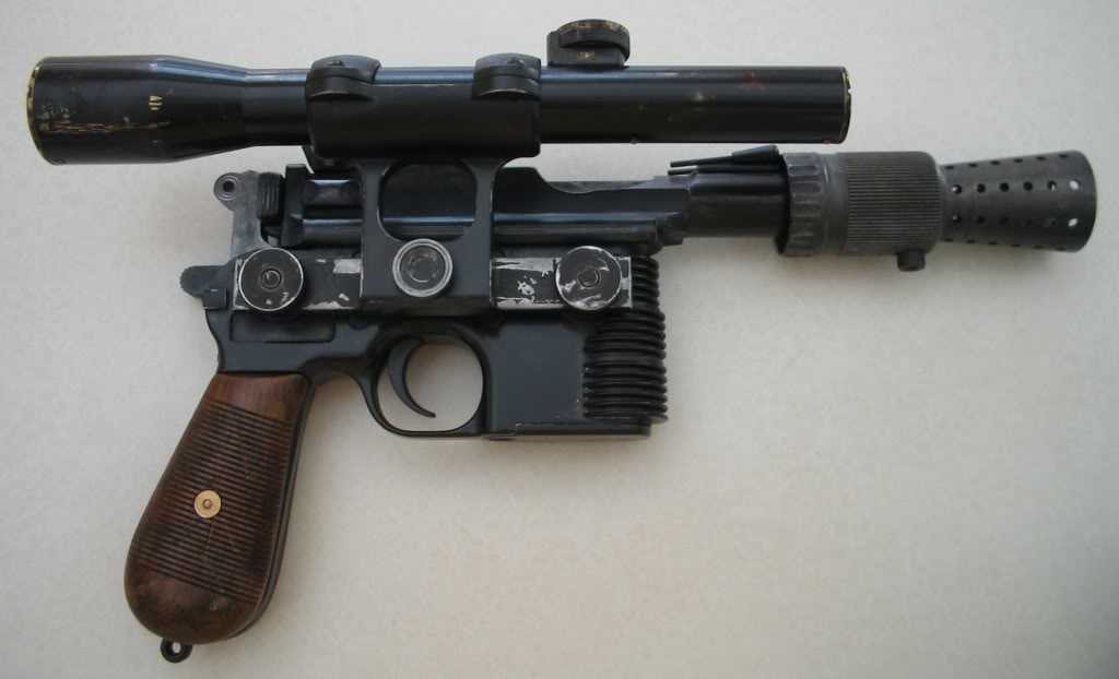 Voilà, hier il m'est pris l'idée de faire le blaster d'Han Solo (le seul le vrai) alors après une toute petite heure voici le résultat (avec l'image de l'original pour comparer), j'espère que ça vous plait!