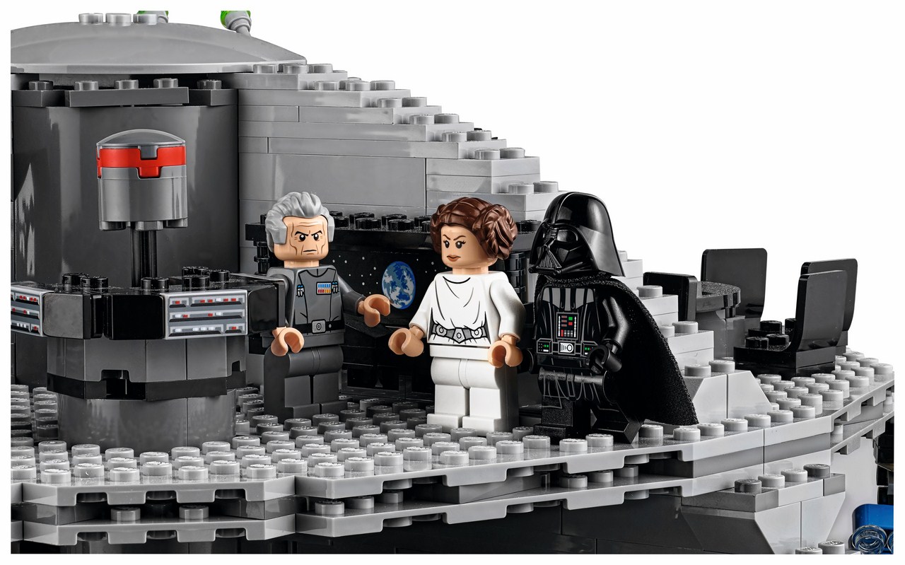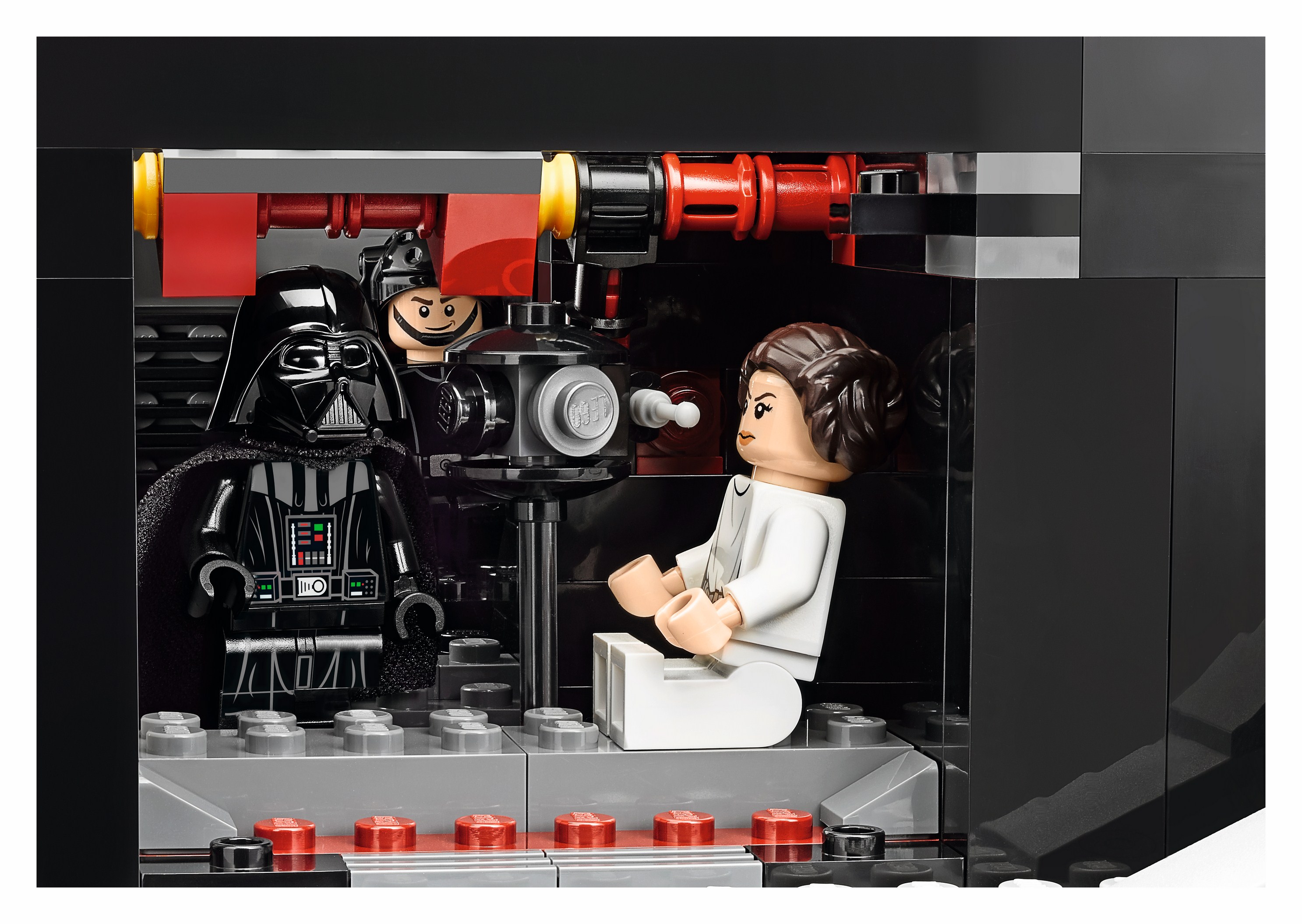 • Includes 23 minifigures: Grand Moff Tarkin, Darth Vader, Emperor Palpatine, Imperial Navy Officer, Imperial Officer, 2 Stormtroopers, 2 Death Star Troopers, 2 Emperor's Royal Guards, 2 Death Star Gunners, Death Star Droid, Obi-Wan Kenobi, Chewbacca, Princess Leia, C-3PO, Han Solo, Han Solo (disguise), Luke Skywalker (Tatooine), Luke Skywalker (disguise) and Luke Skywalker (final duel), plus R2-D2, an Imperial Astromech and a Dianoga trash compactor monster.