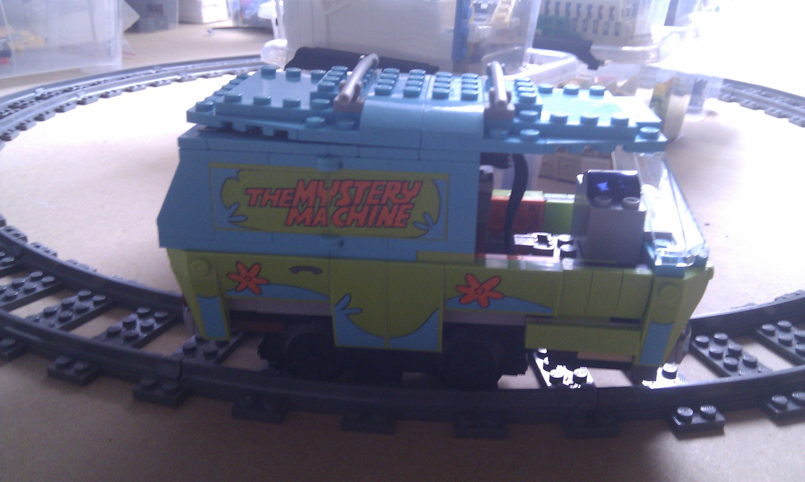 Et pour lier les différents éléments je vais faire un chemin de fer, et j ai donc motorisee ma mystery machine.